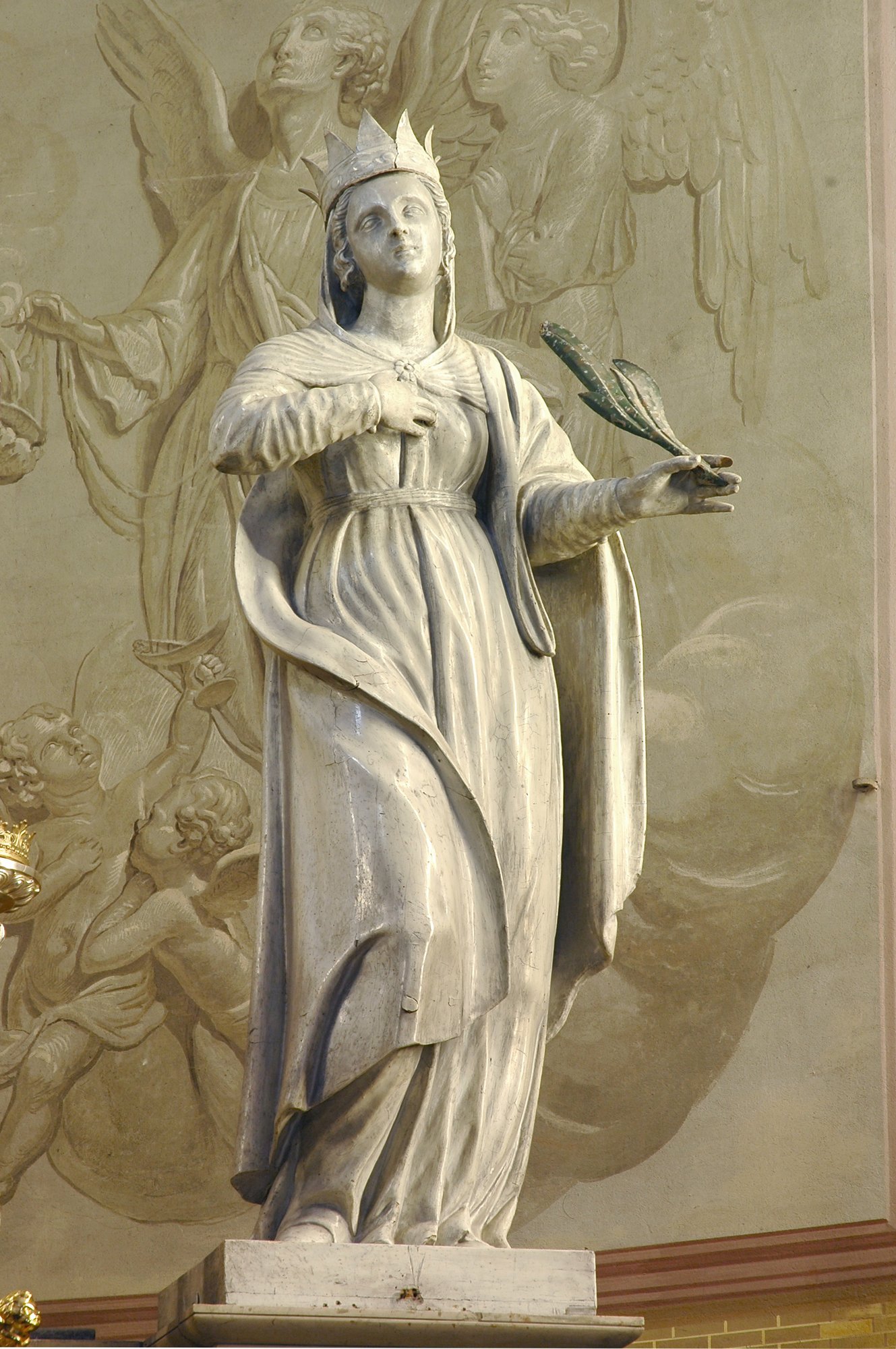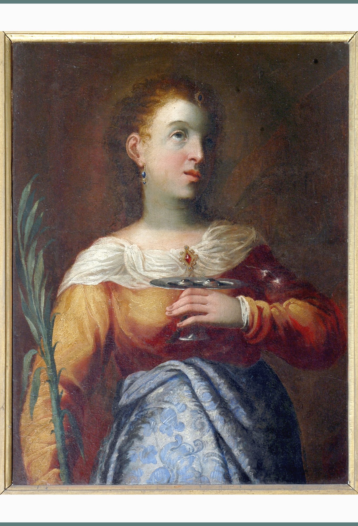 Segnaliamo sempre all’interno della sacrestia un olio su tela attribuito al Padovanino con l’immagine di Santa Lucia; probabilmente in origine la pala era collocata come sottoquadro al citato Altare delle Milizie e probabilmente si tratta della trasformazione di una precedente raffigurazione di Santa Giustina.