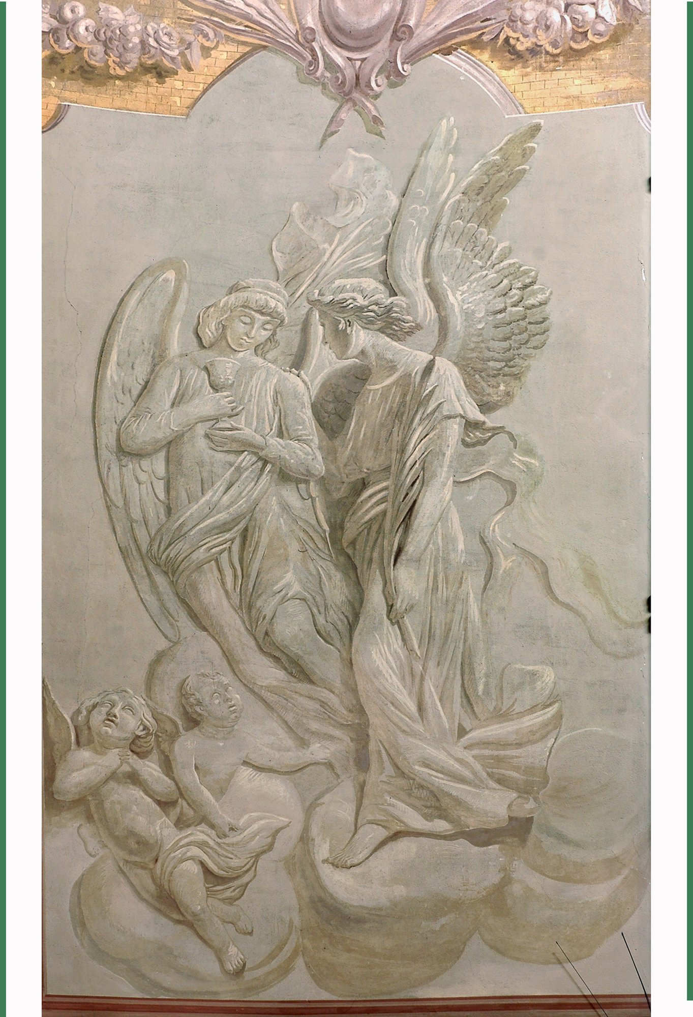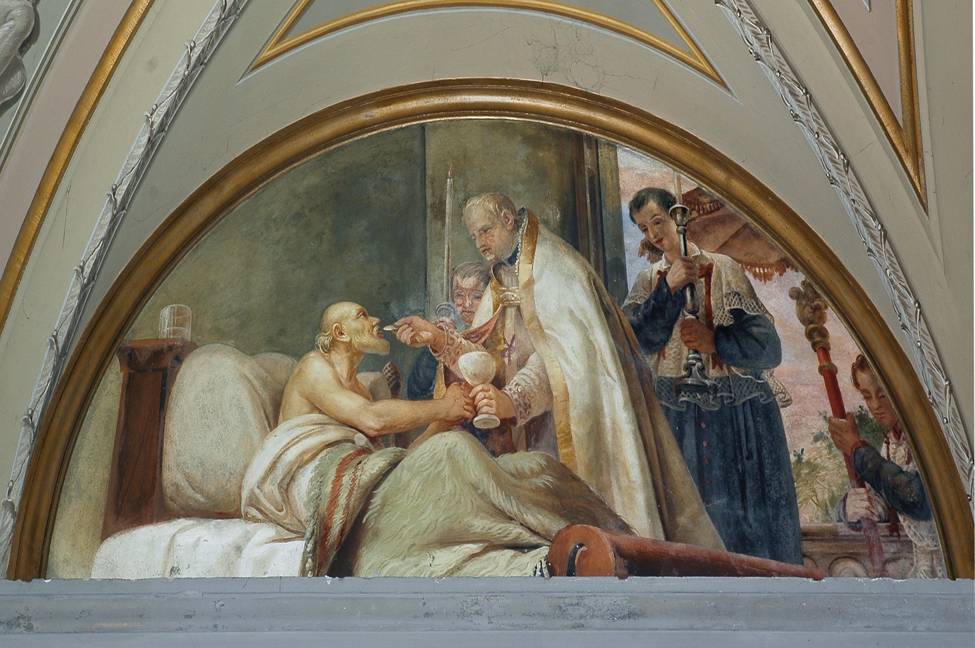 L’affresco sulla volta della cappella, eseguito da Domenico Fabris nel 1861, rappresenta la Comunione degli Apostoli; la composizione pittorica delle lunette evidenzia quattro soggetti eucaristici: La Prima Comunione di san Luigi Gonzaga, il Viatico di San Girolamo, la Comunione di santa Giuliana Falconieri, unico santo femminile dell’ordine dei servi di Maria e la Comunione di Stanislao Kostka, santo patrono della Polonia e considerato una delle personalità più significative dell’ordine gesuita.