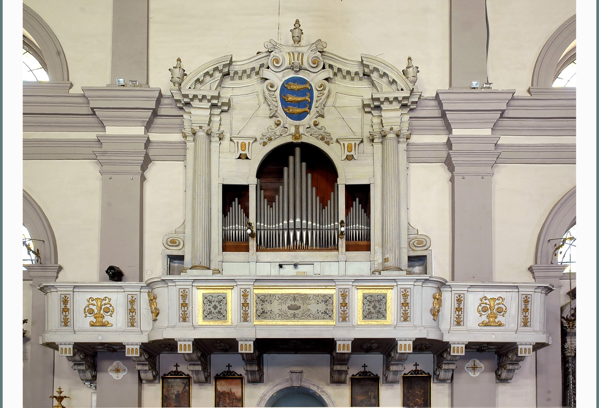 Prima ancora che la costruzione del duomo fosse completata, tutte le funzioni religiose erano accompagnate da musica. Nel 1648 fu costruito un organo e il palco della cantoria, collocati sulla parete di sinistra del duomo. Tale organo era sormontato dallo stemma della famiglia Dolfin, affiancato da due putti che reggevano strumenti musicali, rimossi nell’Ottocento. Nel 1811 lo strumento originale fu venduto ed acquistato l’attuale.