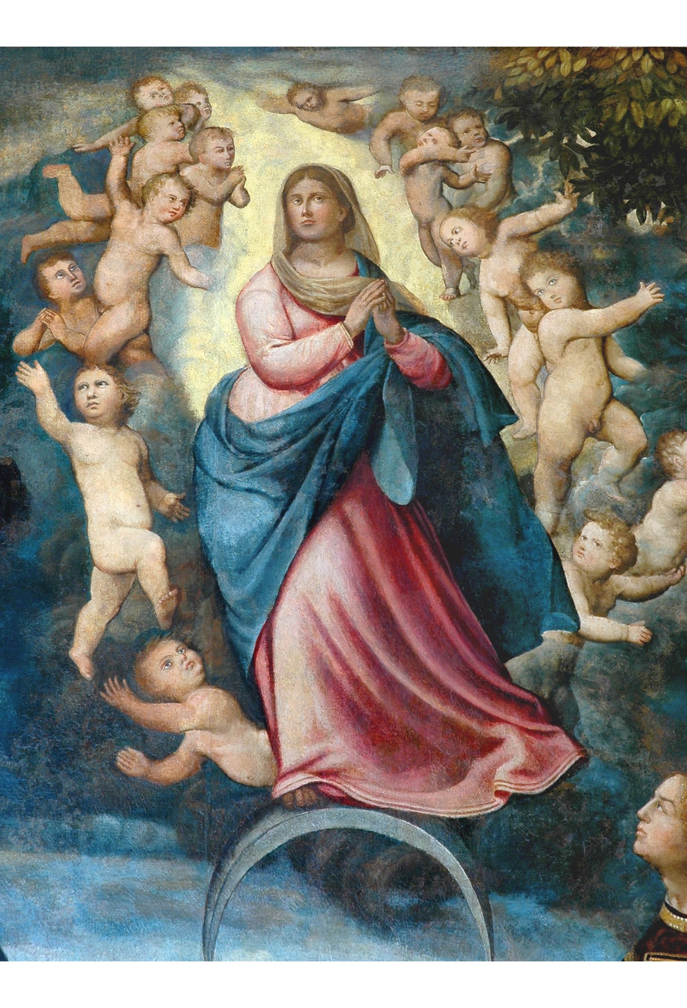 Sulla parete di sinistra della cappella si possono ammirare una serie di dipinti: La Natività (secoli XVII-XVIII) di attribuzione incerta; L’Assunta (secolo XVI), opera attribuita al noto pittore friulano Pomponio Amalteo (1505 -1588). Non ci sono notizie certe sul dipinto, che per similitudini stilistiche con altre opere dell’Amalteo, potrebbe essere ricondotta se non a lui personalmente, alla sua scuola o al genero Giuseppe Moretto. L’altra tela raffigura l’Estasi di san Filippo Neri e proviene dall’omonimo oratorio soppresso, istituito a Palma nel 1681. L’opera fu realizzata dall’udinese Giovanni Cosattini (1625-1699), canonico di Aquileia, che ebbe chiara fama lavorando come ritrattista alla corte di Vienna.