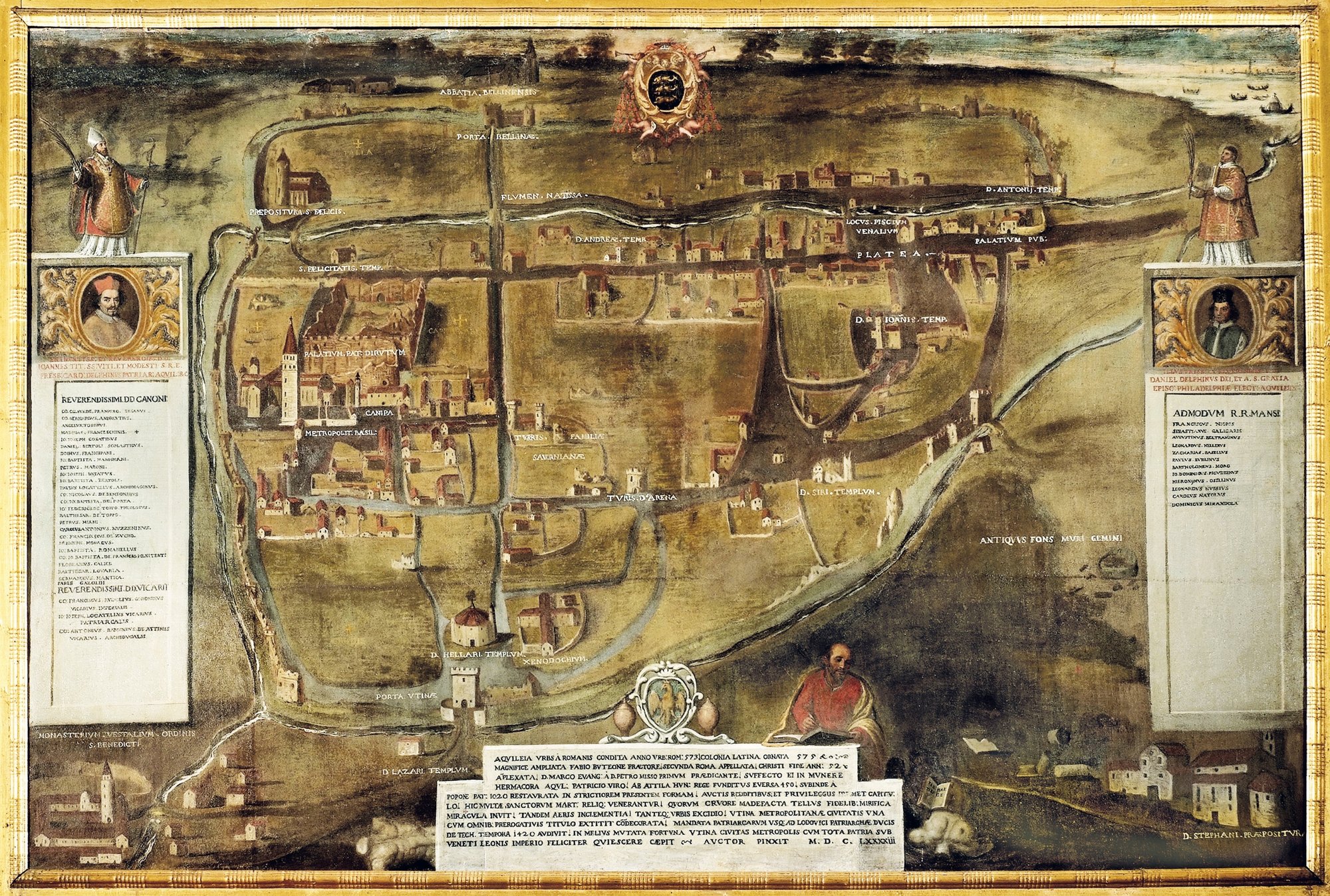 Numerosi sono anche in dipinti di pregio, tra i quali La soppressione del Patriarcato di Aquileia, realizzato nel 1751 dall’importante pittore romano Placido Costanzi e donata a Benedetto XIV, il papa che aveva soppresso il Patriarcato di Aquileia.