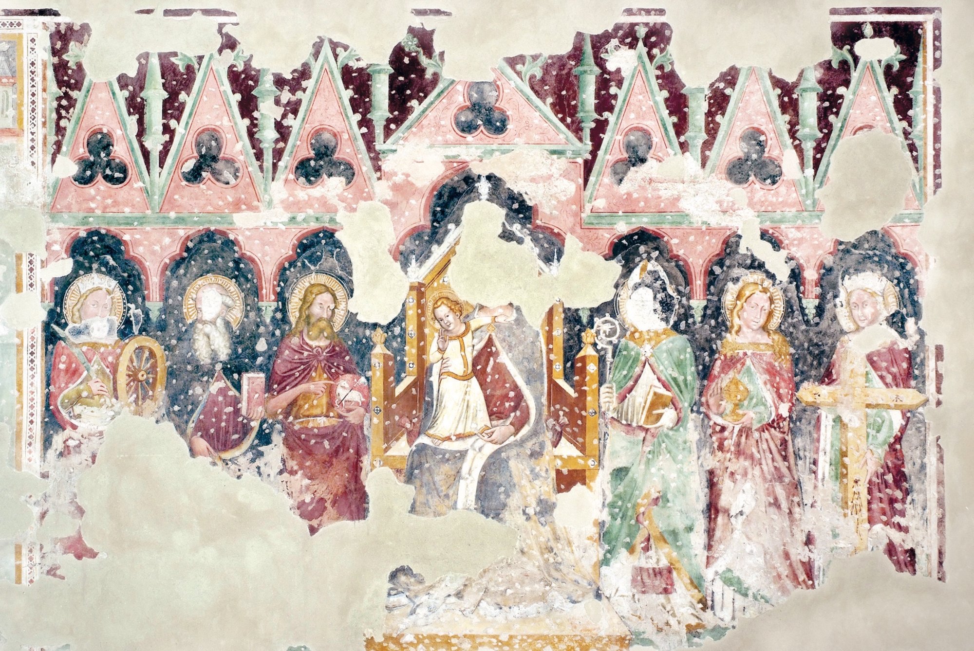 Si tratta di freschissimi, e nelle concezione modernissimi, monocromi in violetto lumeggiato di bianco, che proiettano su un fondo dorato figure umane ed elementi paesaggistici, conferendo loro un accentuato plasticismo. Nei vari episodi in cui compare, Dio padre presenta sempre un insolito e sorprendente aspetto giovanile.