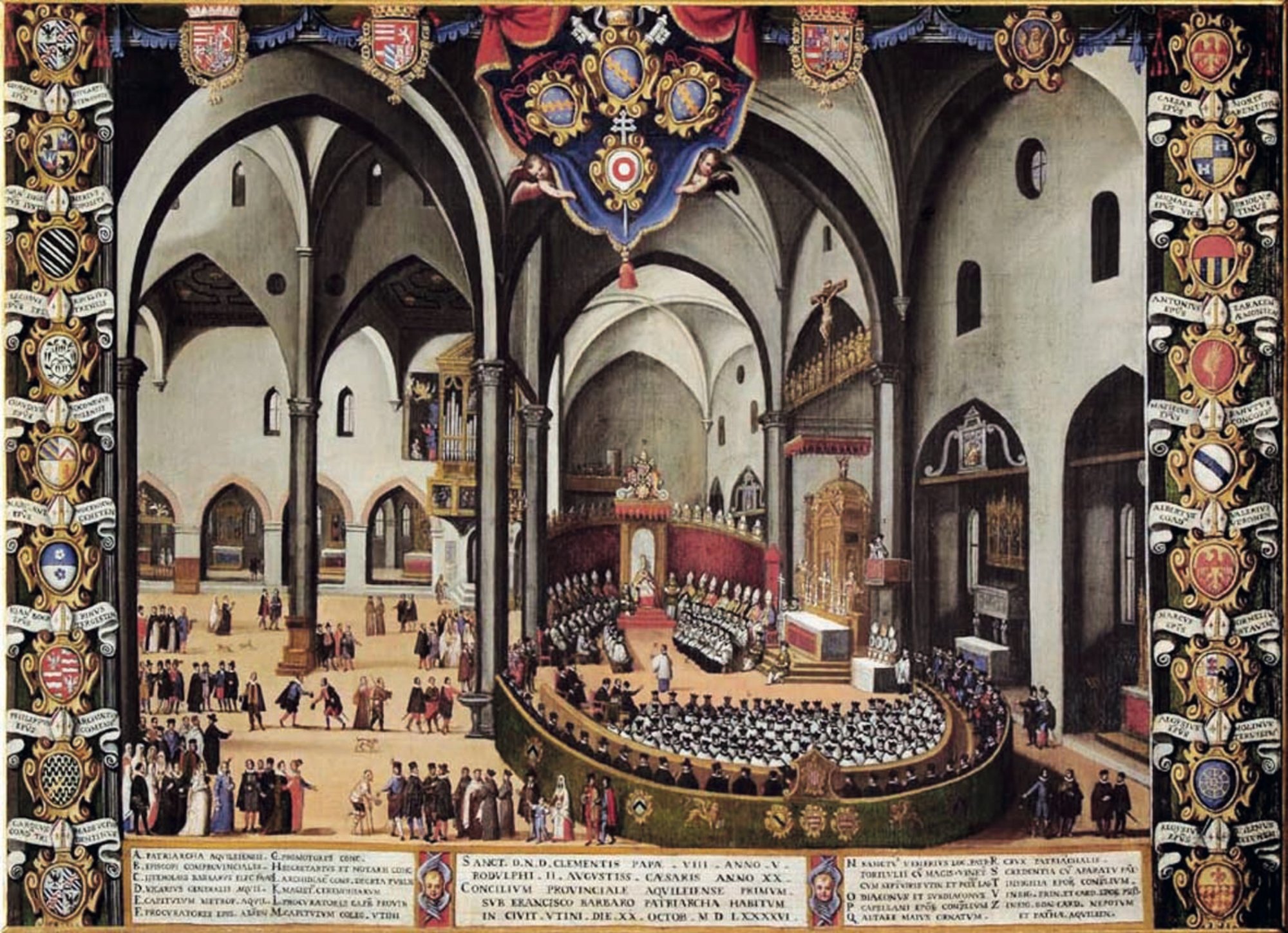 Inoltre, l’Interno del duomo di Udine durante il concilio provinciale del 1596, del pittore fiammingo Ludovico Toeput detto il Pozzoserrato, quadro particolarmente importante dal punto di vista storico perché ci mostra l’interno del duomo di Udine prima della riforma settecentesca.