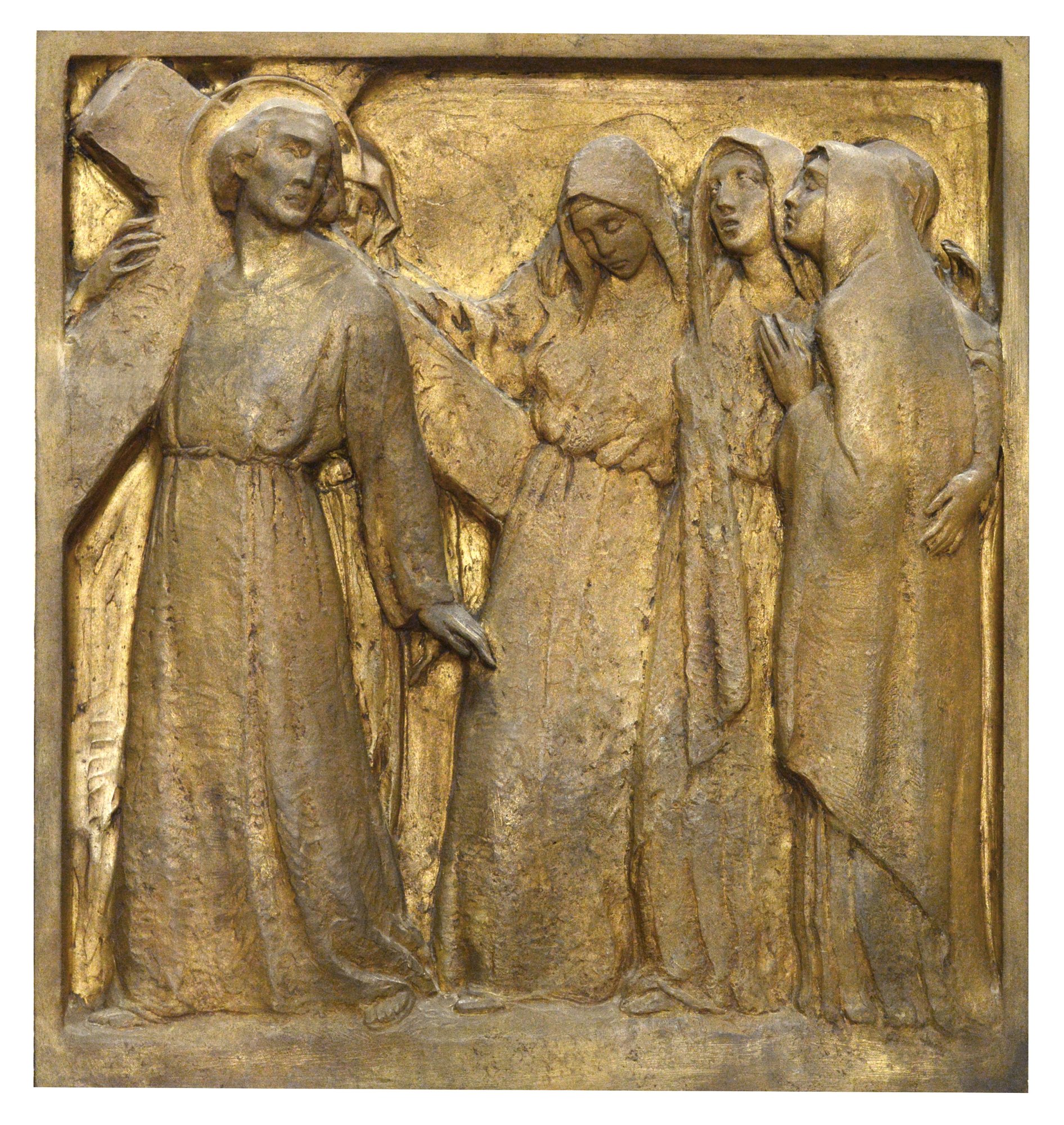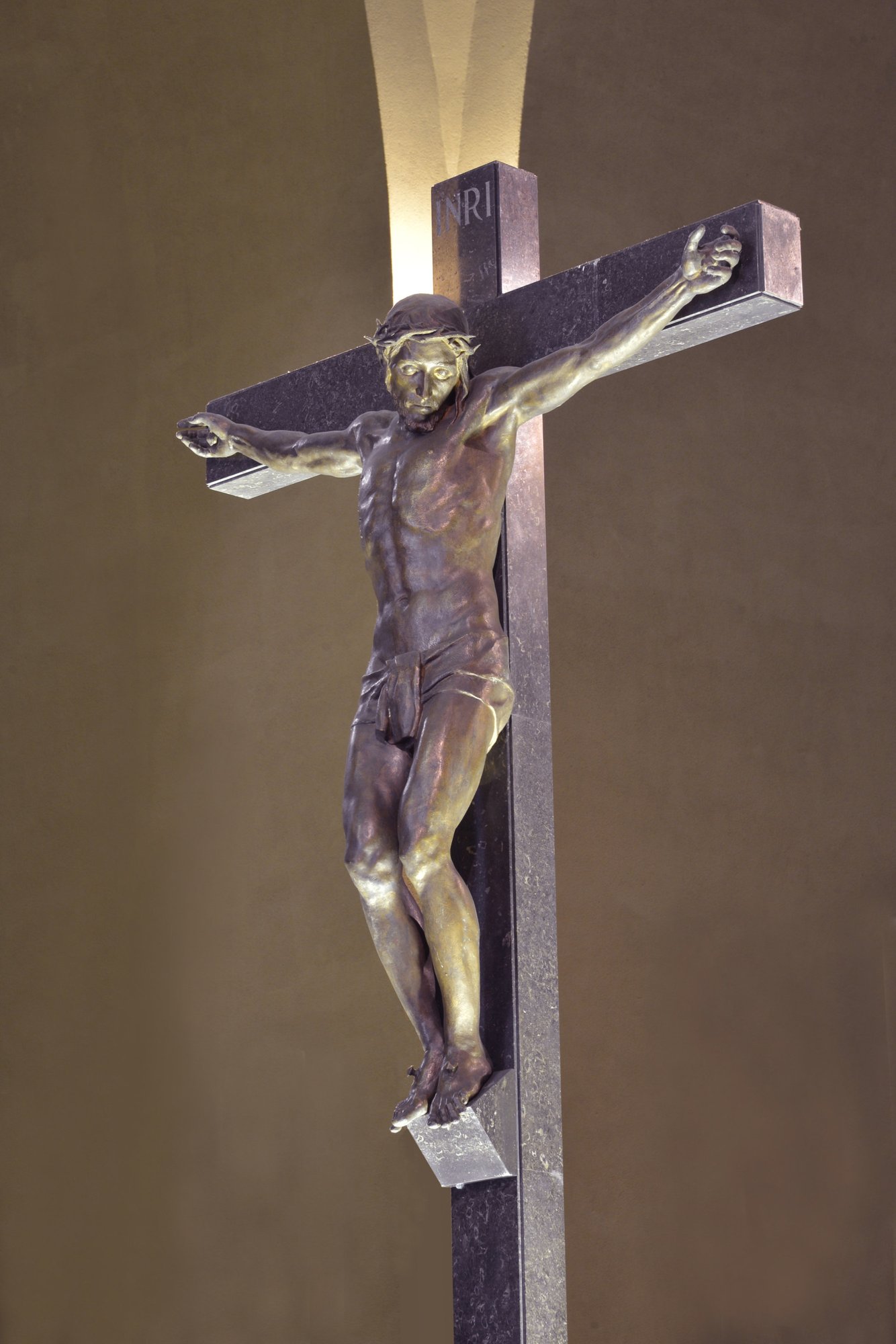 Un grosso problema era costituito dalle parti in bronzo: il monumentale Crocifisso alto metri 2,20 (esso poteva essere ruotato verso la cripta, grazia ad un meccanismo posto alla base), il Tabernacolo che riproduce le il Tempio stesso e i candelieri in stile Novecento. Occorrevano ben sette quintali di bronzo da cannone e Mistruzzi chiese aiuto a monsignor Cossettini per averlo dallo Stato.