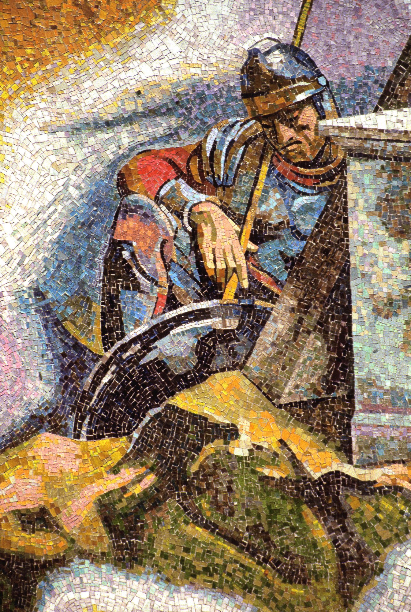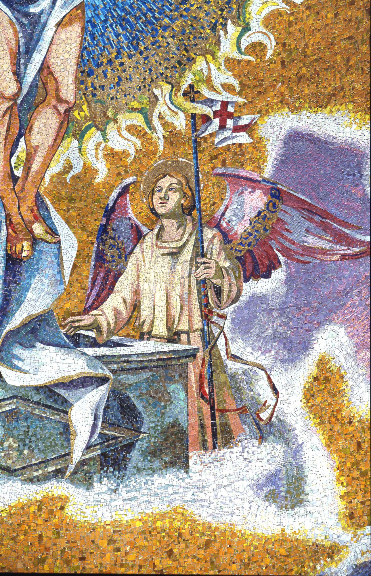 F. Pittino, esecutore Scuola Mosaicisti di Spilimbergo, La Resurrezione di Cristo, 1968, mosaico a smalto con tessere dorate