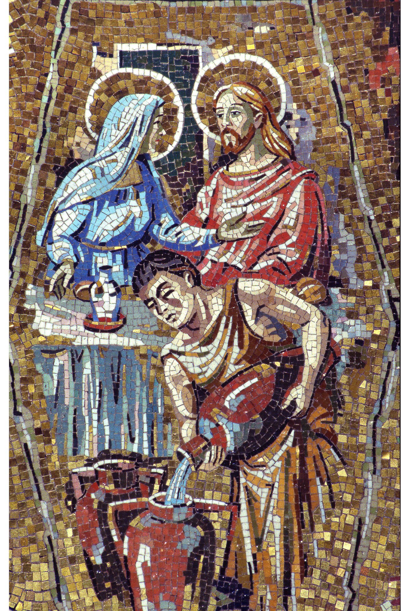 Il cartone preparatorio per il mosaico è del pittore Fred Pittino (Dogna 1906 – Udine 1991), autore di altre opere nel Tempio, e fu eseguito nel 1969 dalla Scuola Mosaicisti di Spilimbergo.