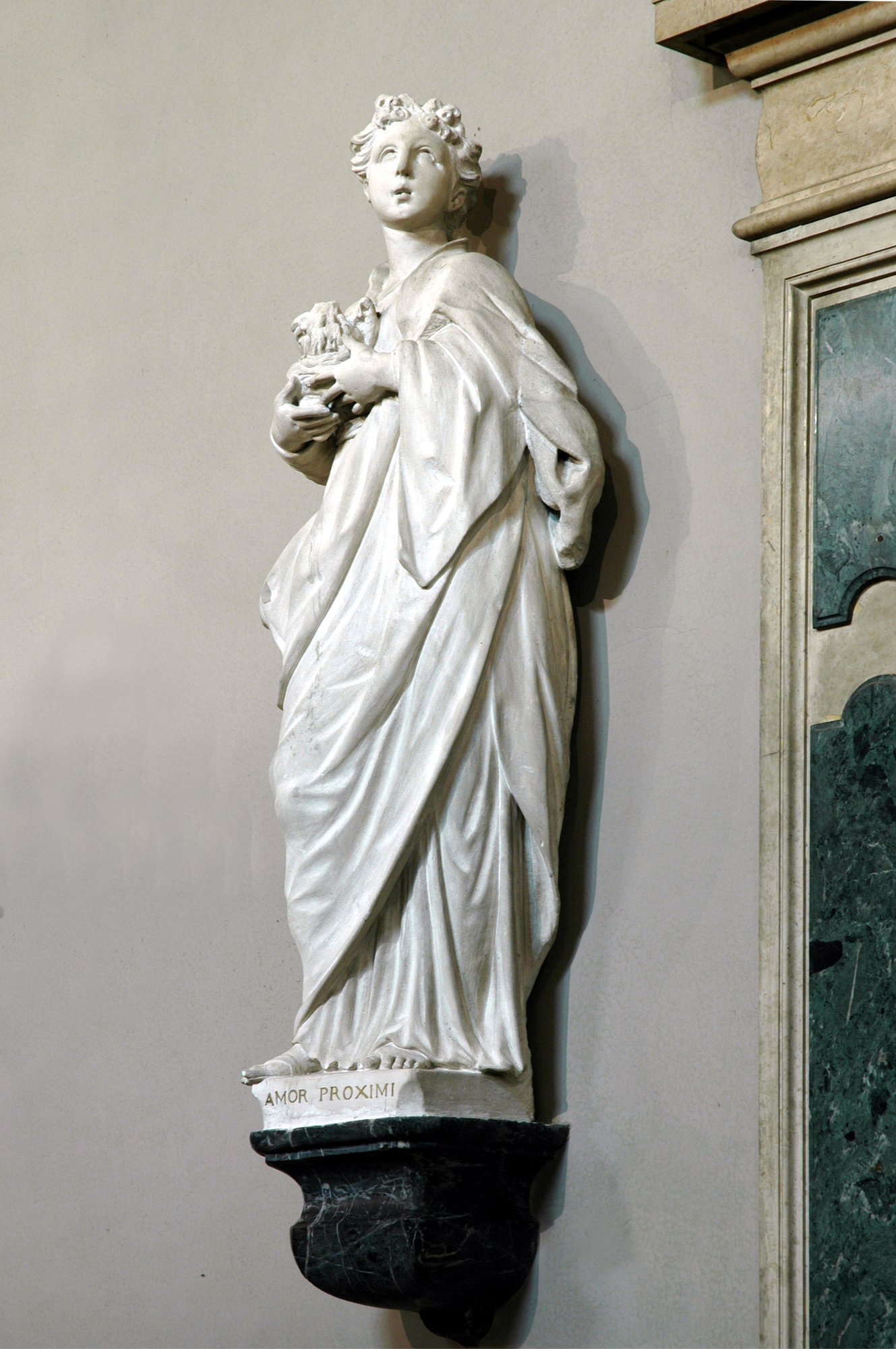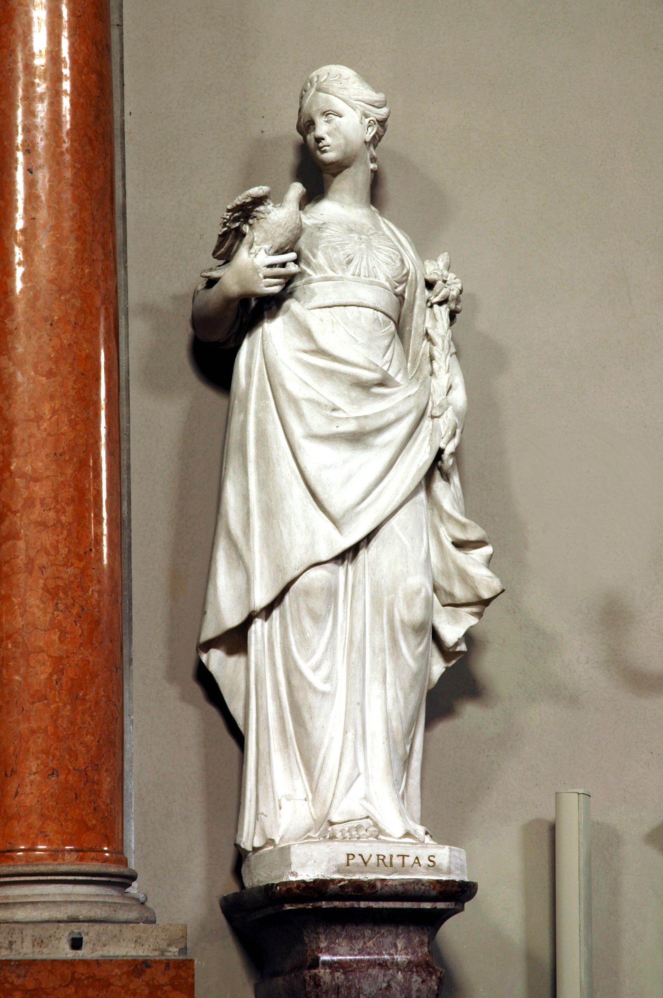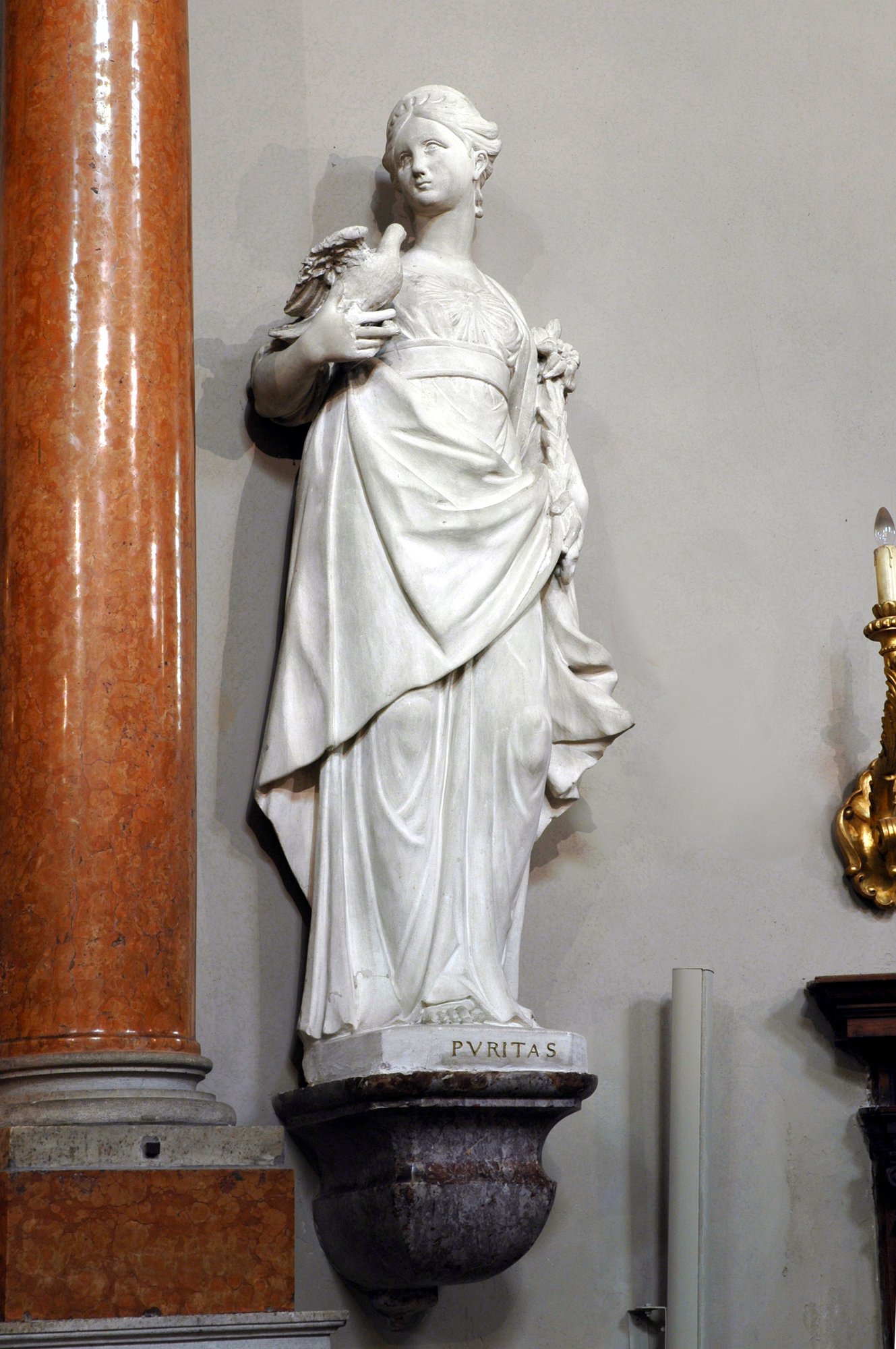 La bottega degli scultori veneti Bonazza operò assiduamente nella chiesa del Carmine. Infatti, a Giovanni Bonazza (1654-1736) e al figlio Francesco (documentato dal 1729 al 1770) si devono le statue della facciata e inoltre due Acquasantiere e le quattordici statue delle Virtù poste sopra le mensole di marmo collocate lungo le pareti dell’aula (due che in origine erano poste ai lati dell’arco trionfale sono state successivamente tolte per dar spazio a due porte e sono state collocate nell’adiacente cappella di San Giuseppe, usata ora come cappella feriale).