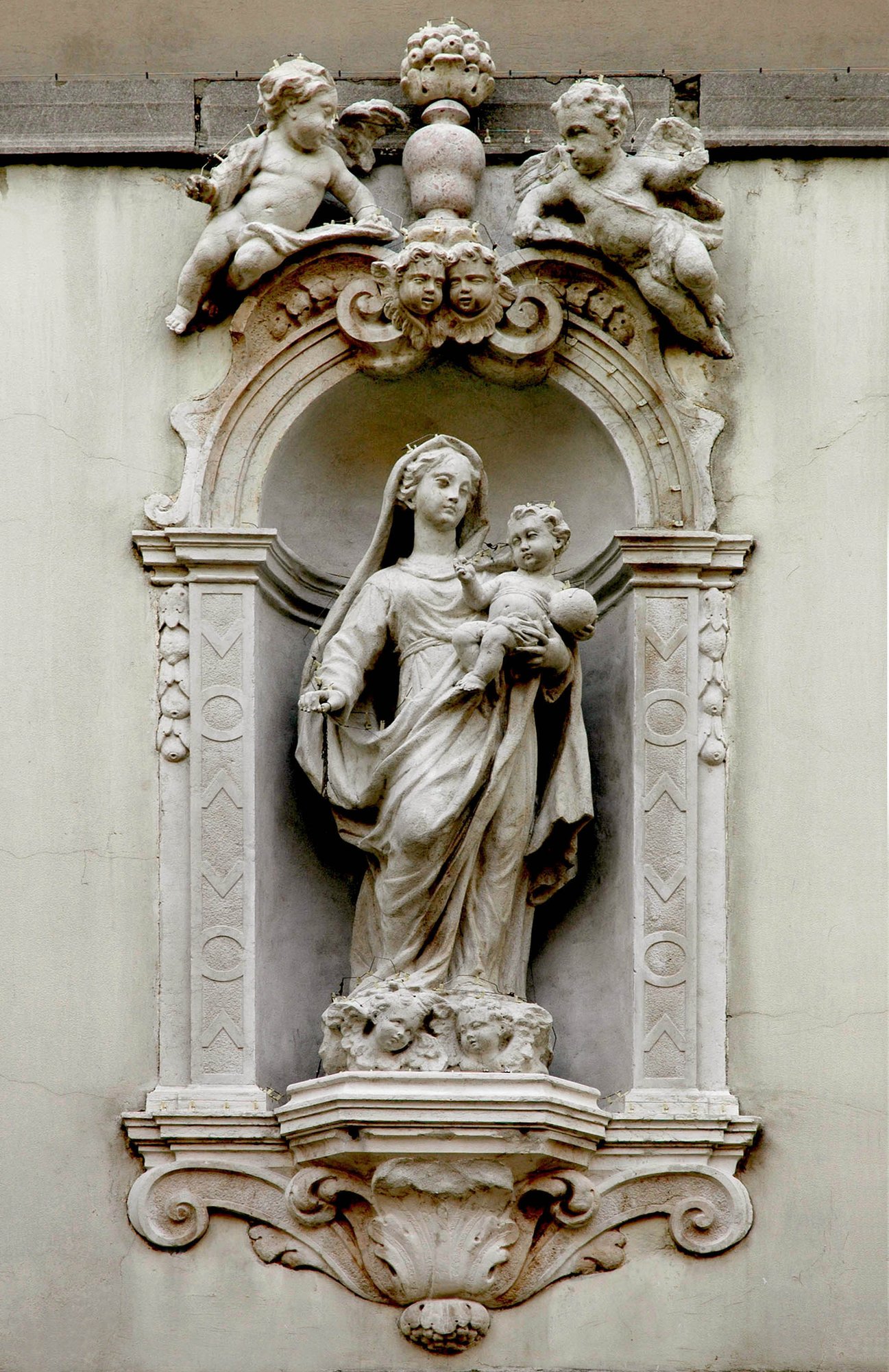 Chiesa della Beata Vergine del Carmine, facciata, La Madonna del Carmelo, Giovanni e Francesco Bonazza