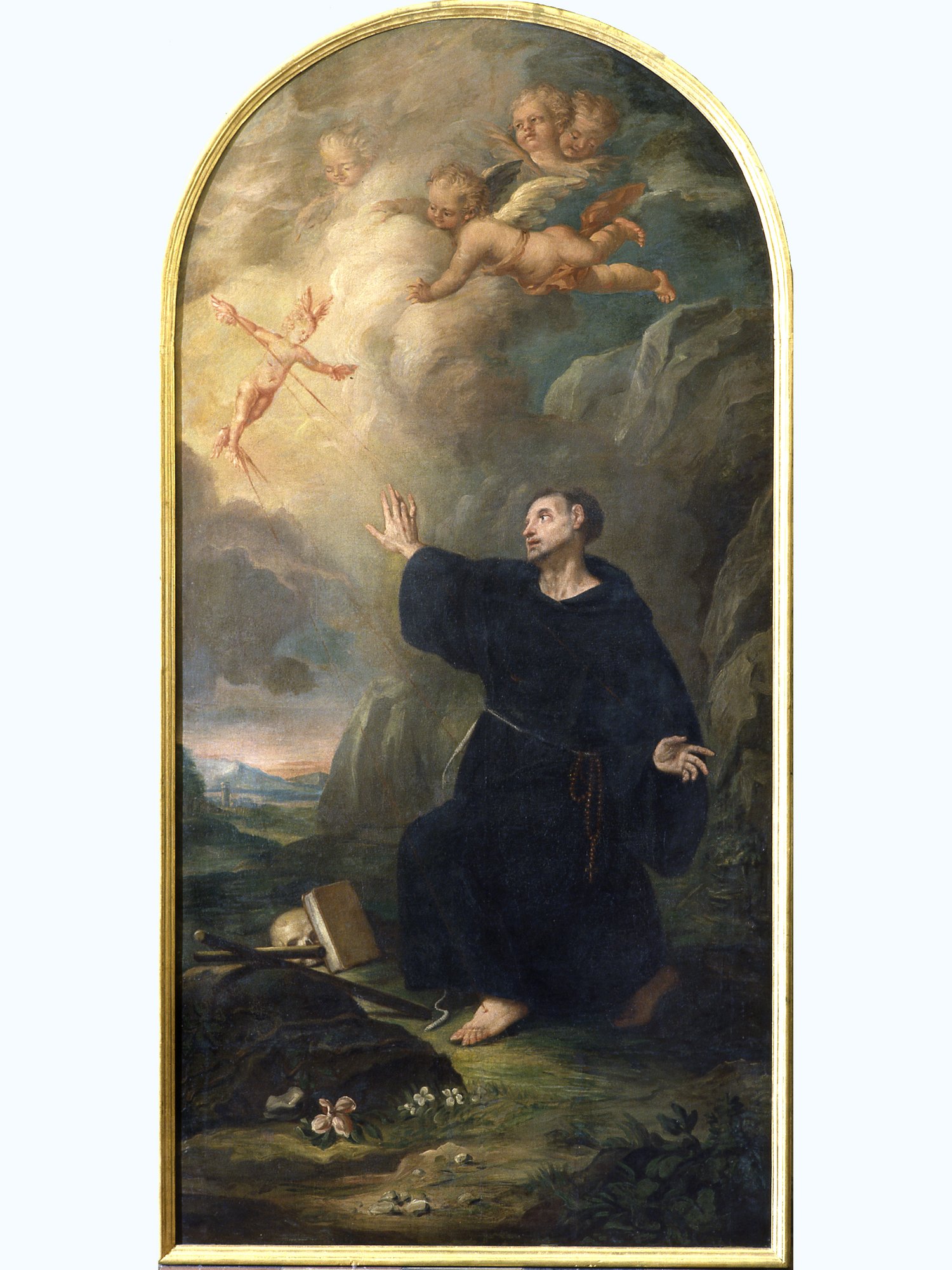Ricchi è ritenuto anche l’autore degli affreschi del soffitto dell’aula e a lui spettano altri tre quadri, uno perduto e due conservati nei Civici Musei di Udine, che i Francescani avevano rimosso rappresentavano due sante (santa Teresa d’Avila e santa Maria Maddalena de’ Pazzi) lontane dalle loro esigenze devozionali.