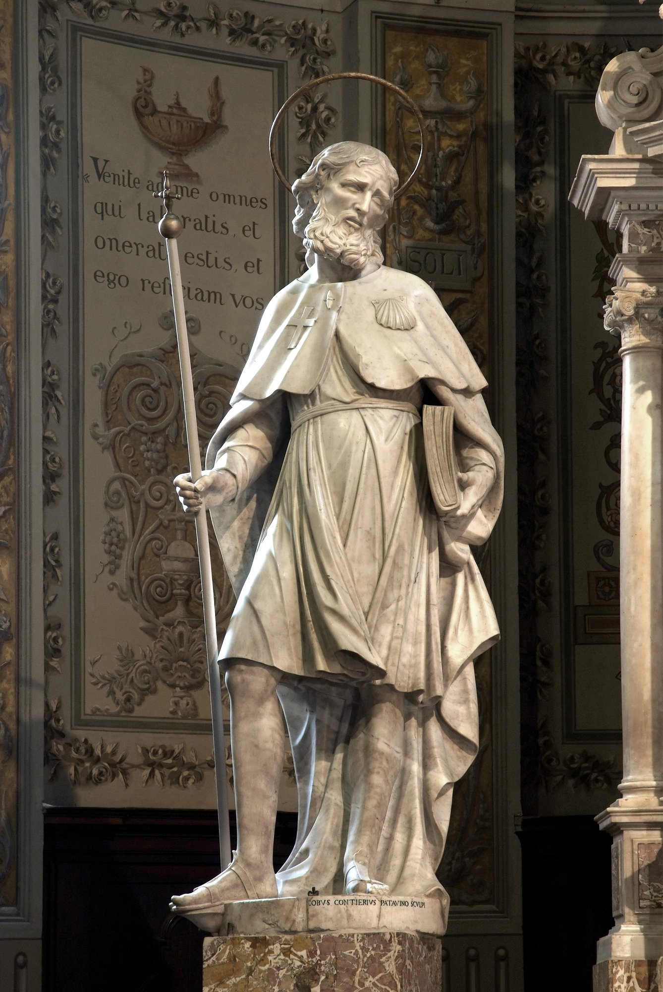 Pietro Venier dipinse sul soffitto le Storie della vita di San Giacomo: nel primo comparto della volta, entro una cornice mistilinea, è raffigurata l’Apparizione della Vergine a San Giacomo, in cui il santo è rappresentato in ginocchio con ai piedi il bastone e il copricapo da pellegrino, secondo l’iconografia tradizionale.