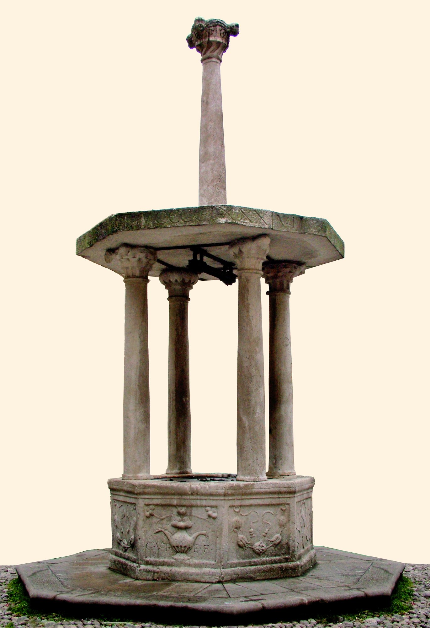 Nel 1487 fu costruito, per volontà del Luogotenente veneto Tommaso Lippomano il pozzo che tutt’oggi ammiriamo anche per l’insolita forma: sulla cisterna ottagona s’impongono, infatti, quattro colonne che sostengono il coperchio sopra cui s’innalza una colonna isolata, mentre sul basamento si vede la scritta C.VT.F.F. (Civitas Utinensis Fieri Fecit).