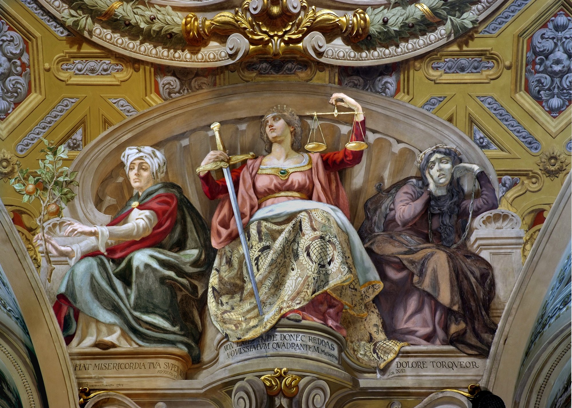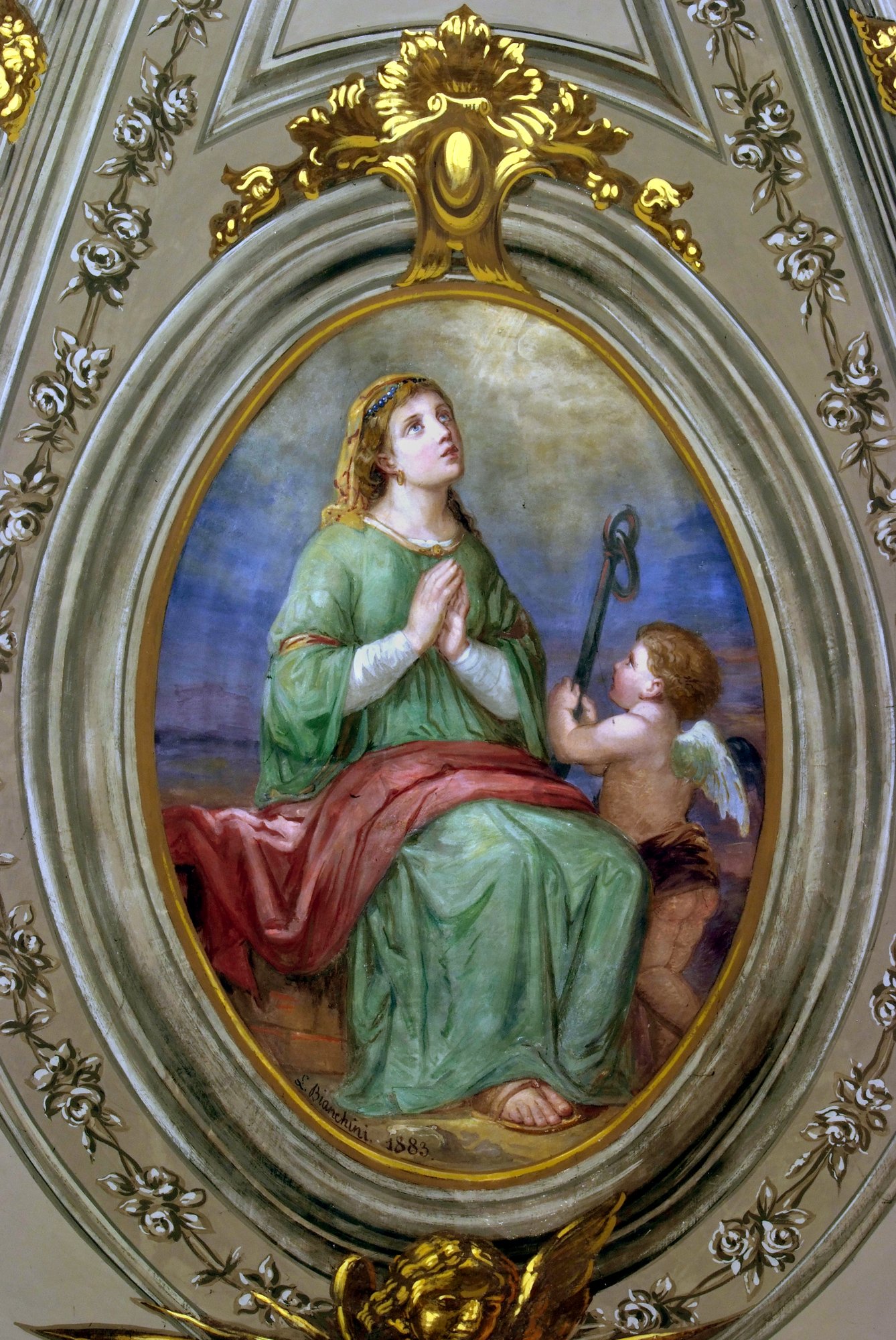 L. Bianchini, Condanna al martirio di San Giacomo, 1885, affresco sul soffitto della sacrestia