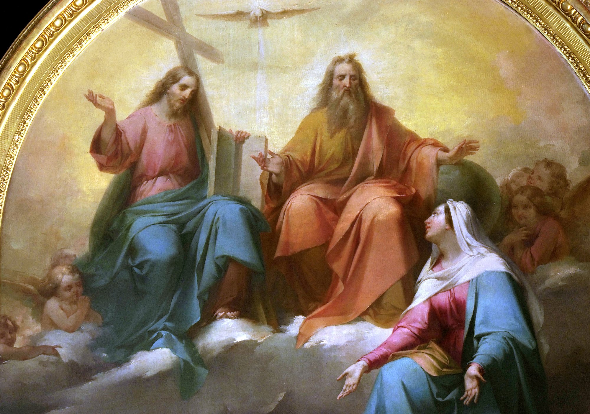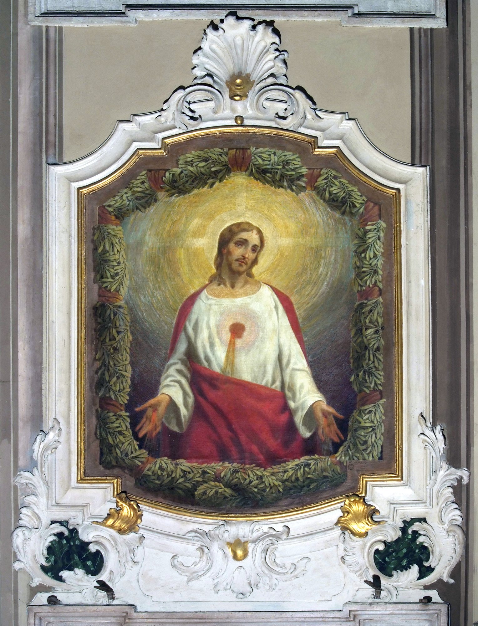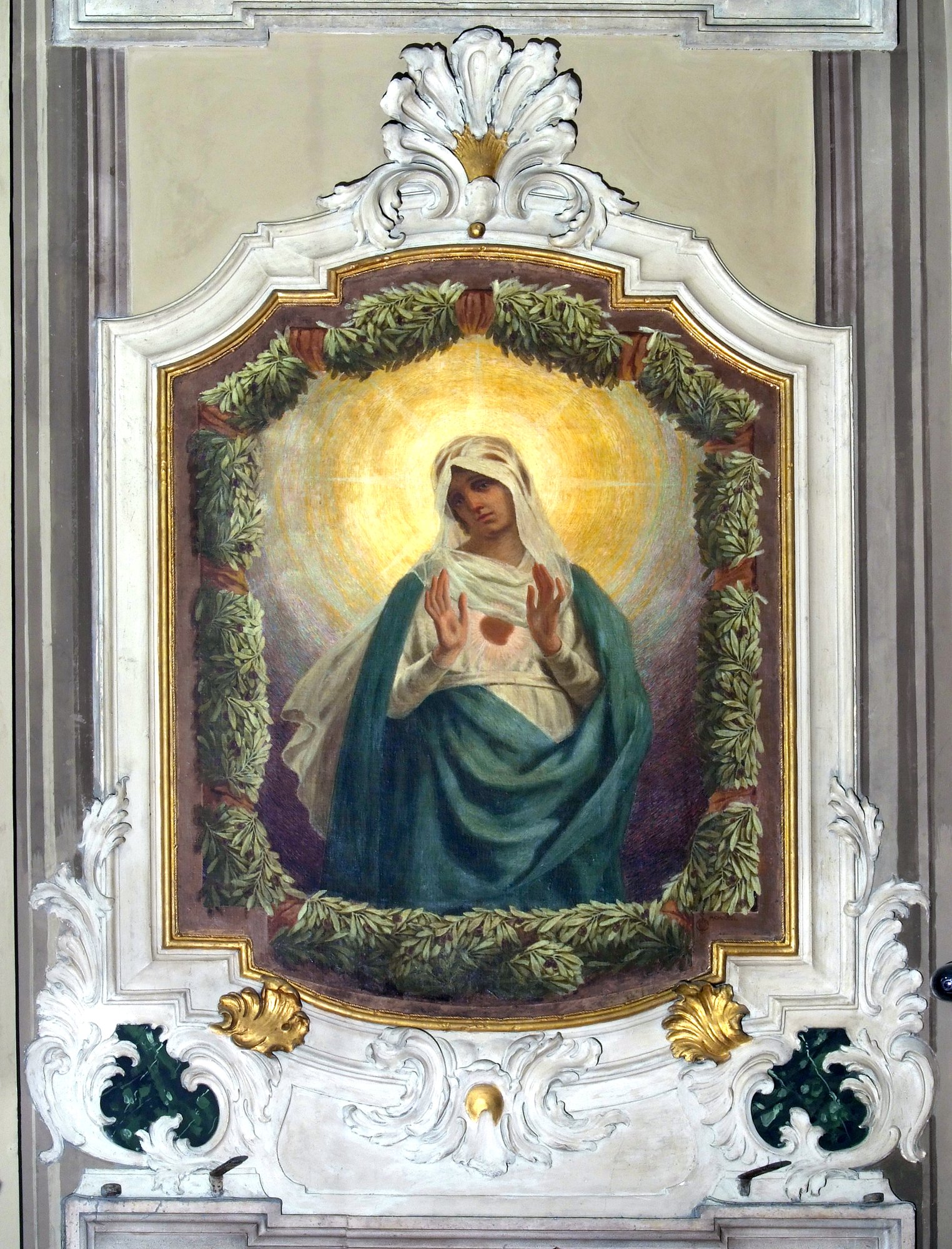Biaggetti sono attribuite anche le due raffinate sovrapporte raffiguranti l’una il Sacro cuore di Gesù, l’altra la Sacro cuore di Maria, collocate sui due ingressi laterali all’altare maggiore.