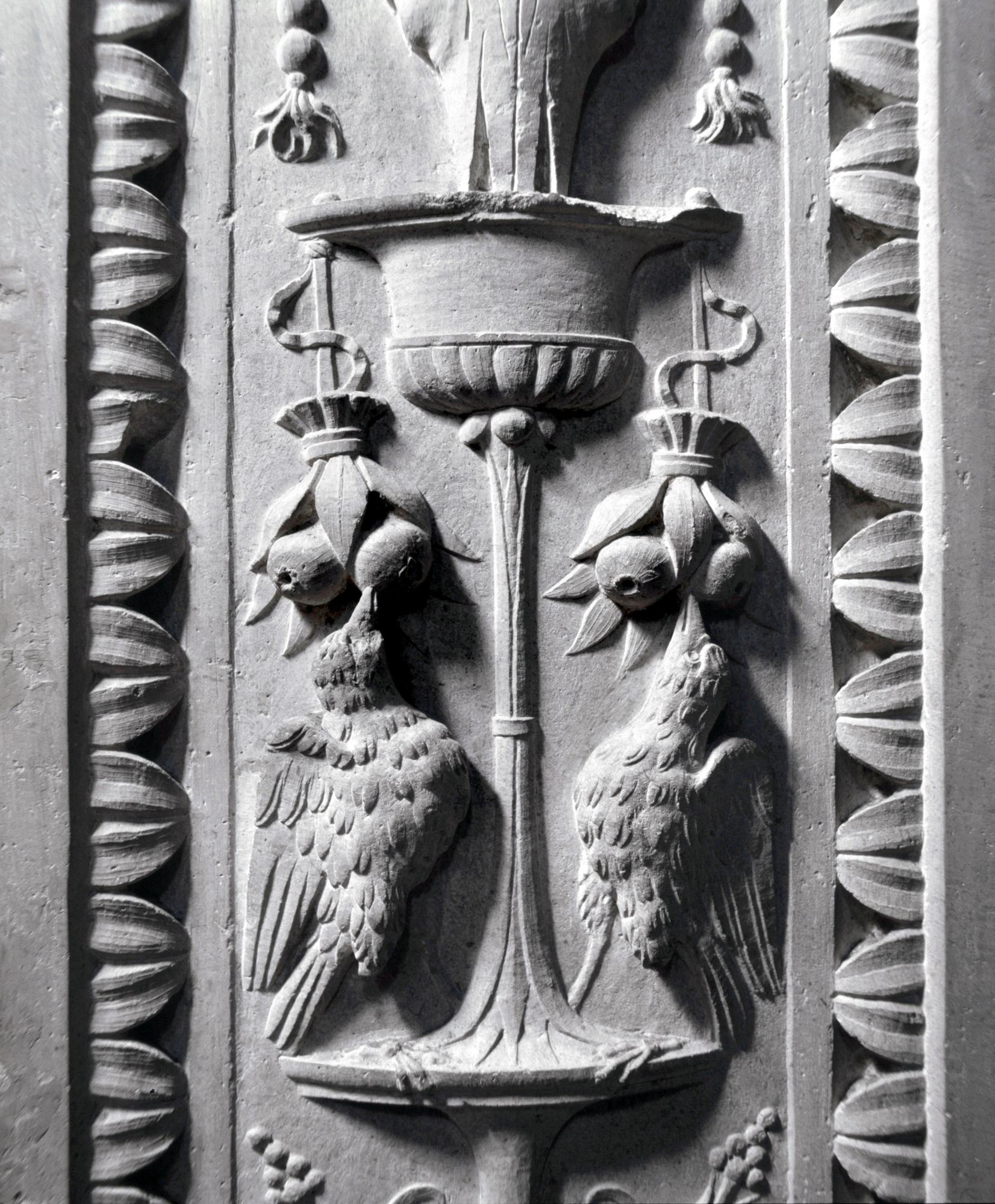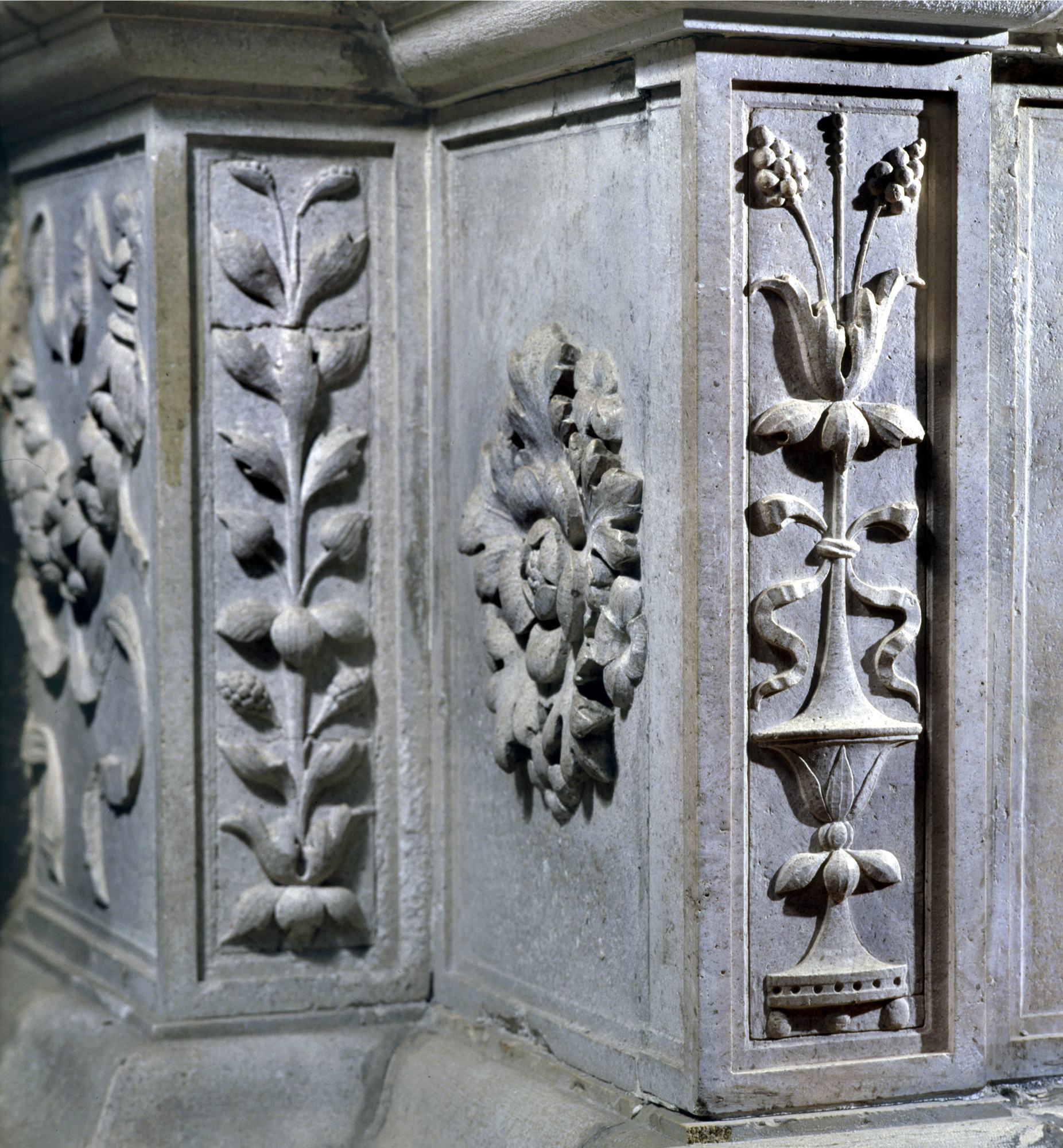 Nel 1731 il lavoro fu affidato al tagliapietre veneziano Pasqualino Lazzarini (1667-1731), attivo anche a Gorizia. Egli riuscì a portare a compimento solo la parte della mensa, mentre gli scultori Giovanni e Marino Grassi di Udine realizzarono il ciborio, le statuette delle nicchie e della trabeazione.