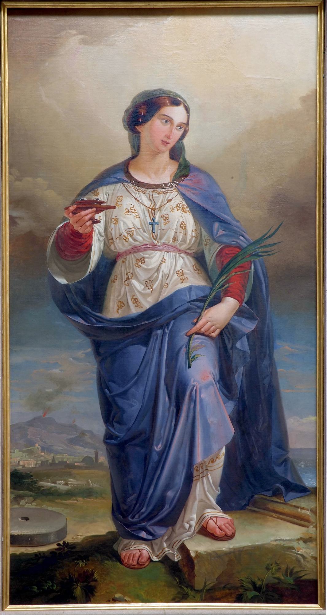 Decisa adesione al gusto romantico mostra il pittore Rocco Pittaco nelle quattro pale degli altari, tra le quali emerge quella di Santa Lucia (sul primo altare a sinistra): palma del martirio e braccio destro proteso a mostrare gli occhi, sullo sfondo dell’Etna in eruzione e della nativa Siracusa. La santa in veste bianca con decorazioni dorate e plasticamente definita mostra nel volto e nei particolari attenzione al dato fisico.