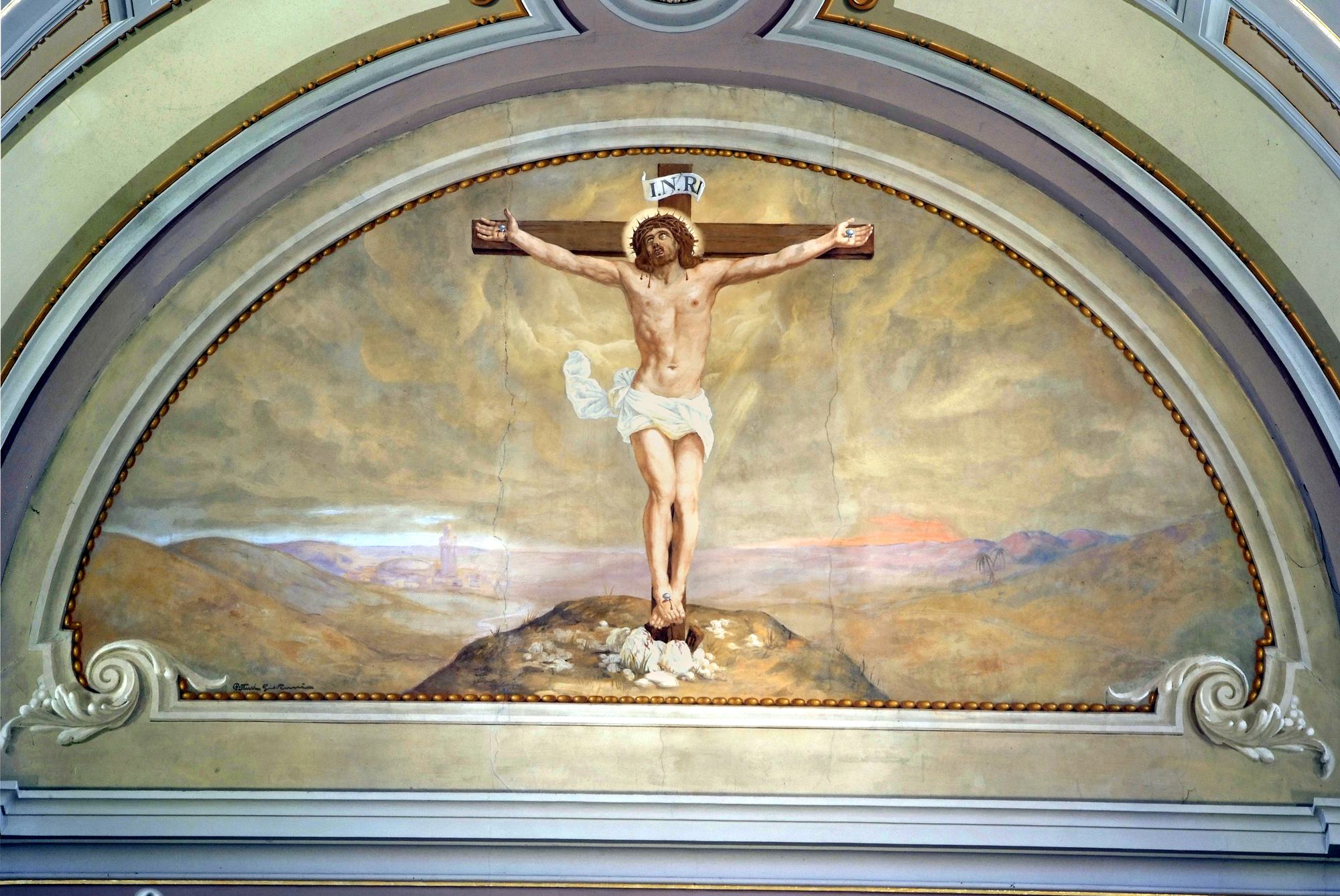 Tra il 1933 e 1934, su commissione del parroco don Antonio Cattivello, fu realizzata la decorazione interna del coro ad opera di Leonardo Elia di Gemona, che eseguì i disegni e diresse i lavori eseguiti dai discepoli Giovanni Pittini ed Alessandro Tessitori. L’iconografia tratta in tre momenti il dogma della Trinità: ad introdurlo bella volta dell’arco santo, Dio Padre – l’occhio inscritto entro triangolo – squarcia le nubi tra testine angeliche; nel presbiterio, un tondo con lo Spirito Sato in forma di colomba sovrasta la lunetta con la grande e drammatica Crocifissione, su di un aspro Golgota, contornato da un paesaggio sfocato e dense nubi verdognole.