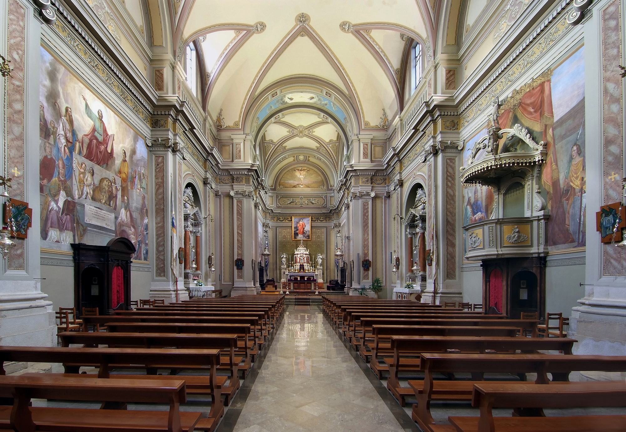 Di vaste dimensioni il ciclo pittorico che si svolge lungo le pareti della navata e del presbiterio e comprende le quattro tele degli altari e i tre specchi della cantoria, fu eseguito nel 1850 -1851 dal pittore Rocco Pittaco (1822-1898).