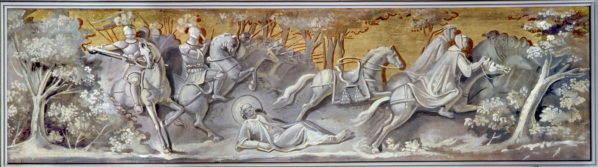 All’instancabile attività del parroco don Amadio Rizzi vanno attribuite la commissione dell’orchestra e dell’organo e l’istituzione di una schola cantorum di giovani. Sempre Rocco Pittaco decorò le predelle della cantoria con Scene dalla vita del beato Bertrando (patriarca di Aquileia tra 1334 e 1350), relative a tre momenti significativi: a sinistra l’Investitura, al centro la Carità, e a destra l’Uccisione, avvenuta nel 1350 ad opera di feudatari locali. A monocromo bianco su fondo ocra, tecnica congeniale al pittore, i due ultimi episodi riprendono le omonime tavolette del XIV secolo nel Museo del Duomo di Udine. La scena centrale con la distribuzione del pane, mantiene il sapore novellistico del modello medievale e fa riferimento alla vita del beato di cui era nota la carità verso i poveri; in chiave ottocentesca è trattata invece l’Uccisione, nella quale l’attenzione è rivolta alla teatralità dei gesti e ai dettagli delle ambientazioni storiche, con un insistito indugiare sulle armature dei cavalieri.