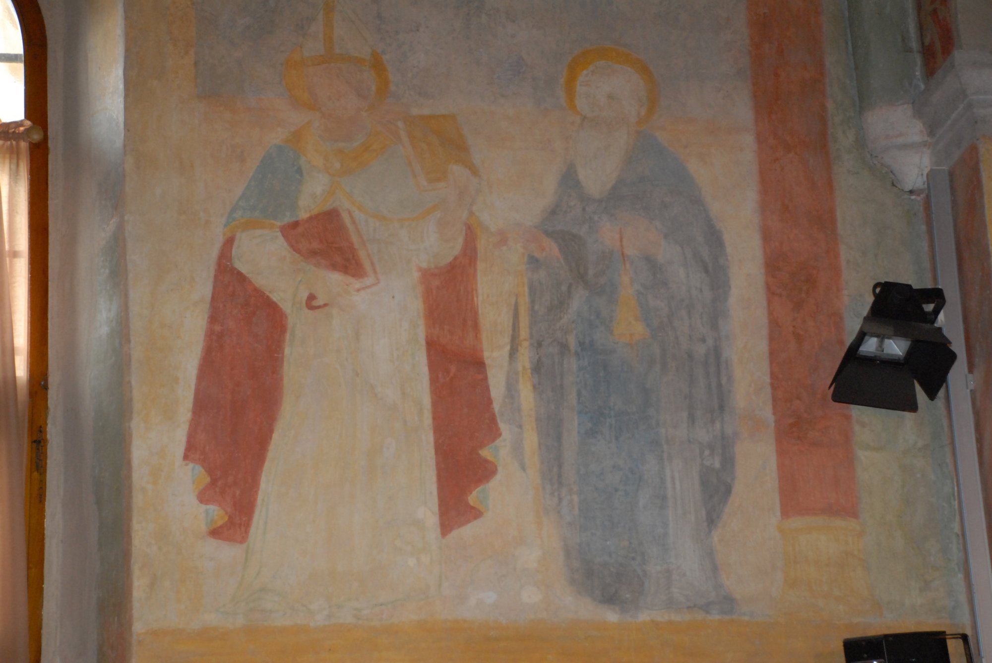 Sui piedritti dell’arco absidale, a sinistra i Santi Benedetto e Sebastiano, a destra i Santi Sigismondo (?) e Rocco.