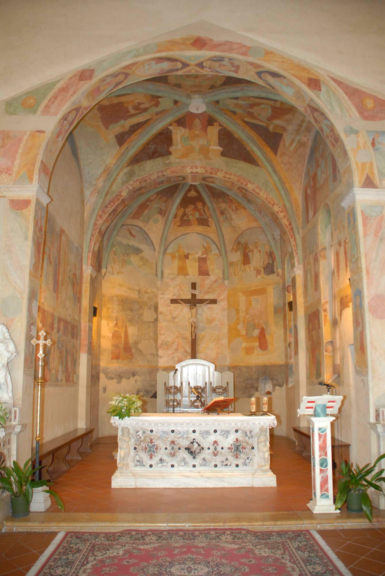 Gli affreschi dell’abside e del presbiterio appartengono ad un modesto seguace del pittore Pietro da San Vito (attivo tra 1470 e 1545 circa).