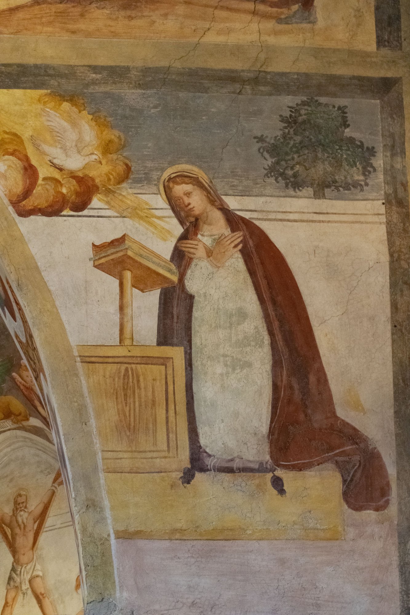 Ai lati dell’arco è presente l’Annunciazione: a destra la Madonna in ginocchio con il libro aperto sul leggio; a sinistra l’Arcangelo Gabriele con il giglio in mano.