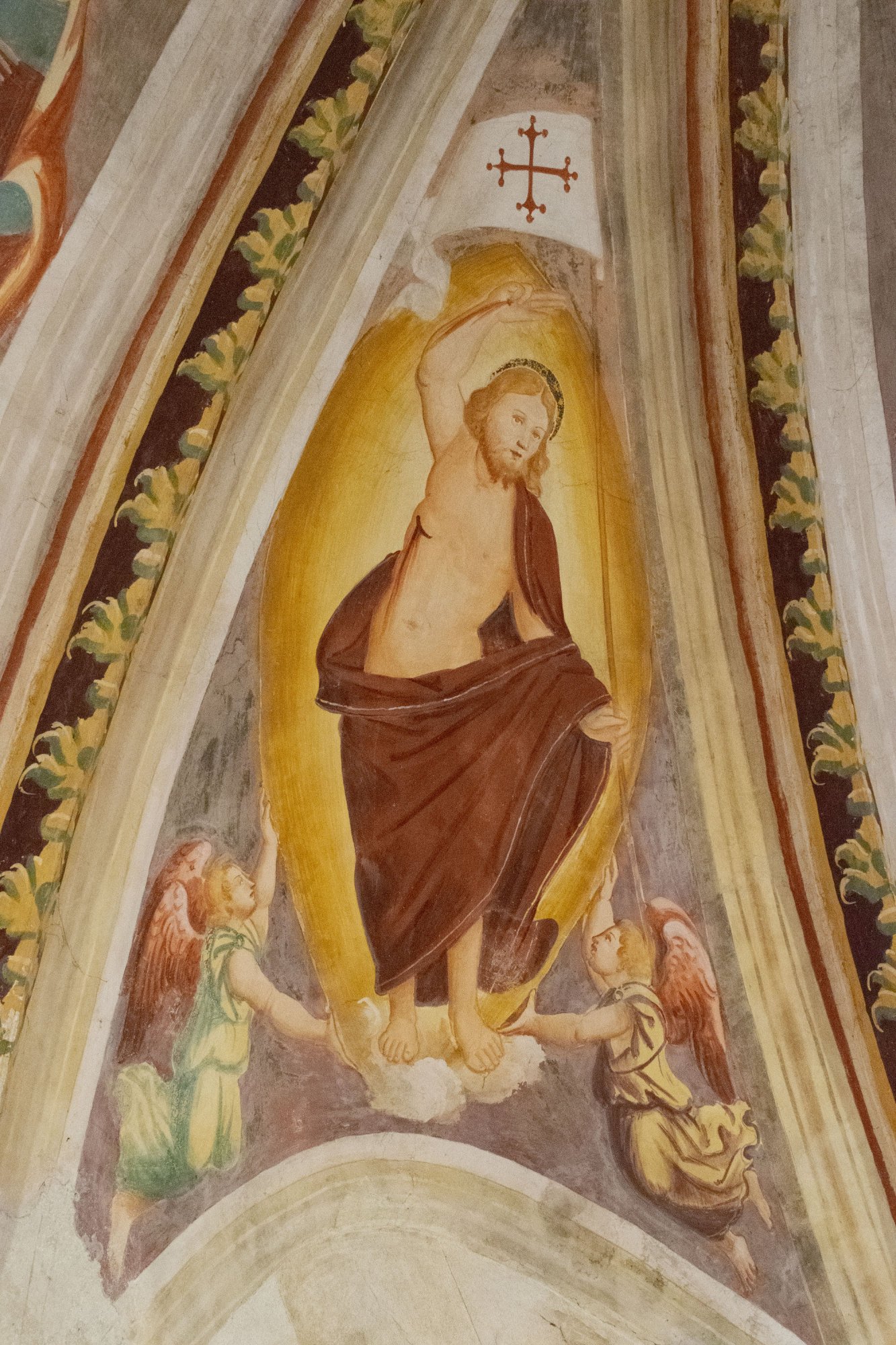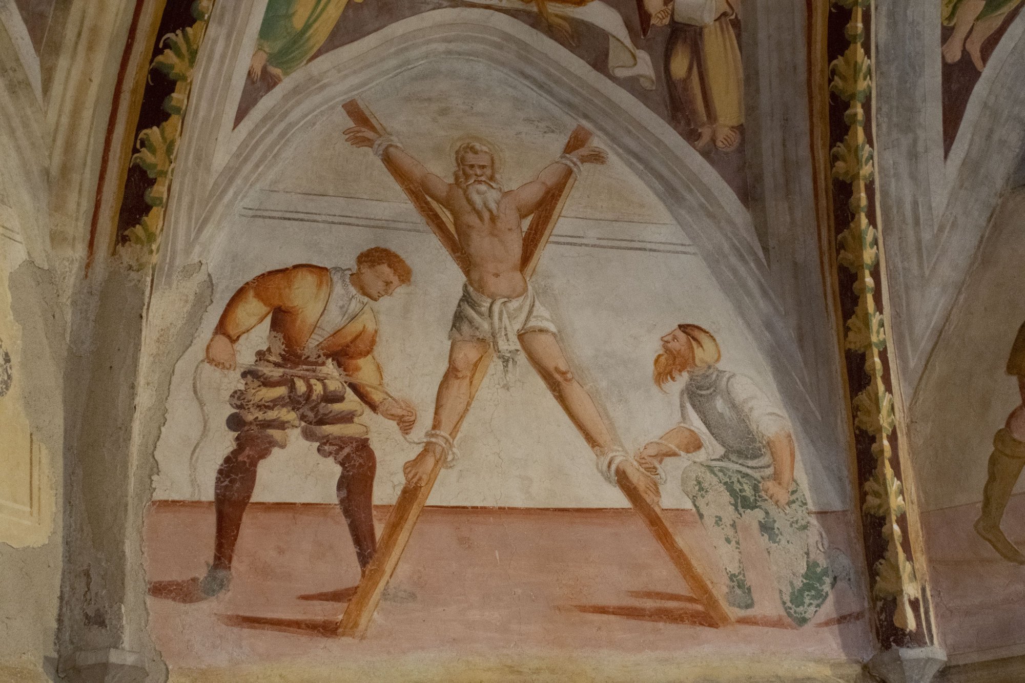 Affreschi dell'arco trionfale con Crocifissione, chiesa di Sant'Andrea Apostolo, Gris