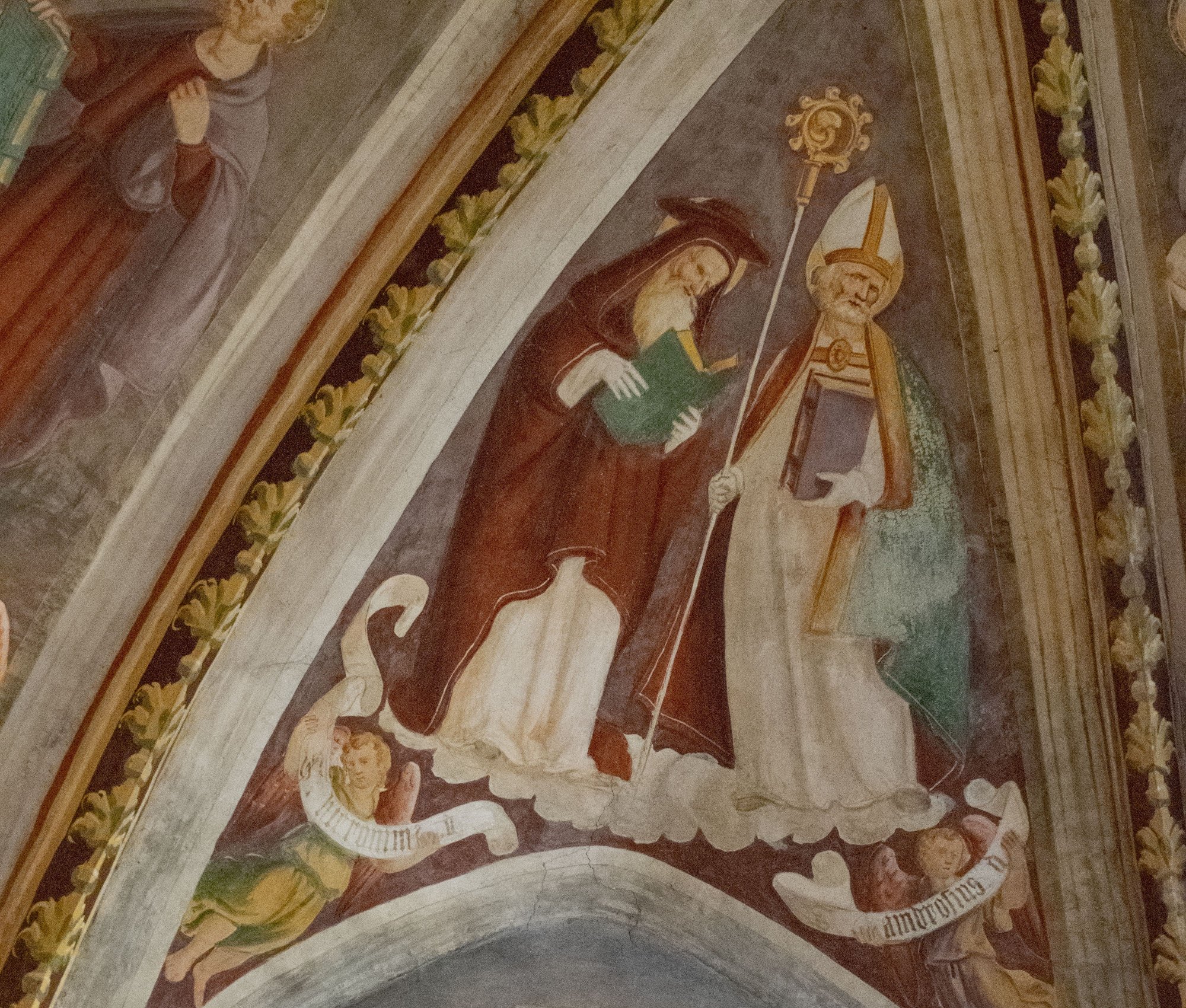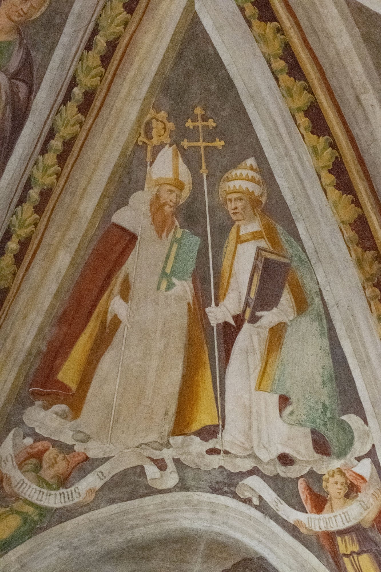 Nelle restanti vele sono dipinti, accorpati i quattro padri della Chiesa occidentale: Gregorio e Agostino, Girolamo e Ambrogio.