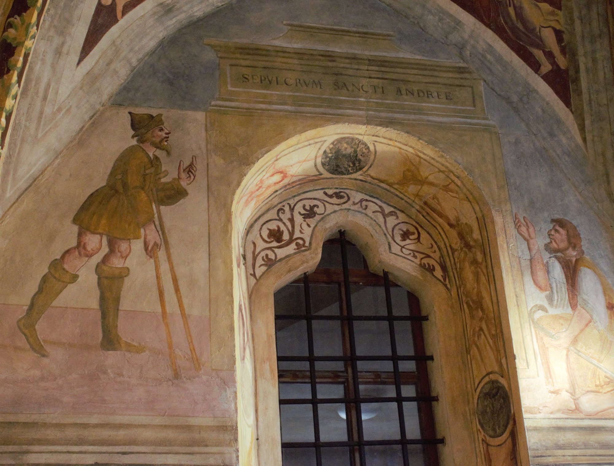 Nelle lunette ogivali, sotto le vele, troviamo cinque episodi della vita di sant’Andrea, apostolo e titolare della chiesa, e sotto ogni scena sono presenti delle didascalie in scrittura gotica: Sant’Andrea libera di città di Nicea dai sette spiriti maligni, trasformandoli in cani; Sant’Andrea guarisce il fanciullo; il Processo di sant’Andrea dinanzi al proconsole Egea, a cui il santo aveva guarito la moglie Massimilla; la Crocifissione di sant’Andrea con la croce decussata, simbolo del martirio; e il Pellegrinaggio degli ammalati e degli storpi al sepolcro di sant’Andrea (SEPVLCRUM SANCTI ANDREE).