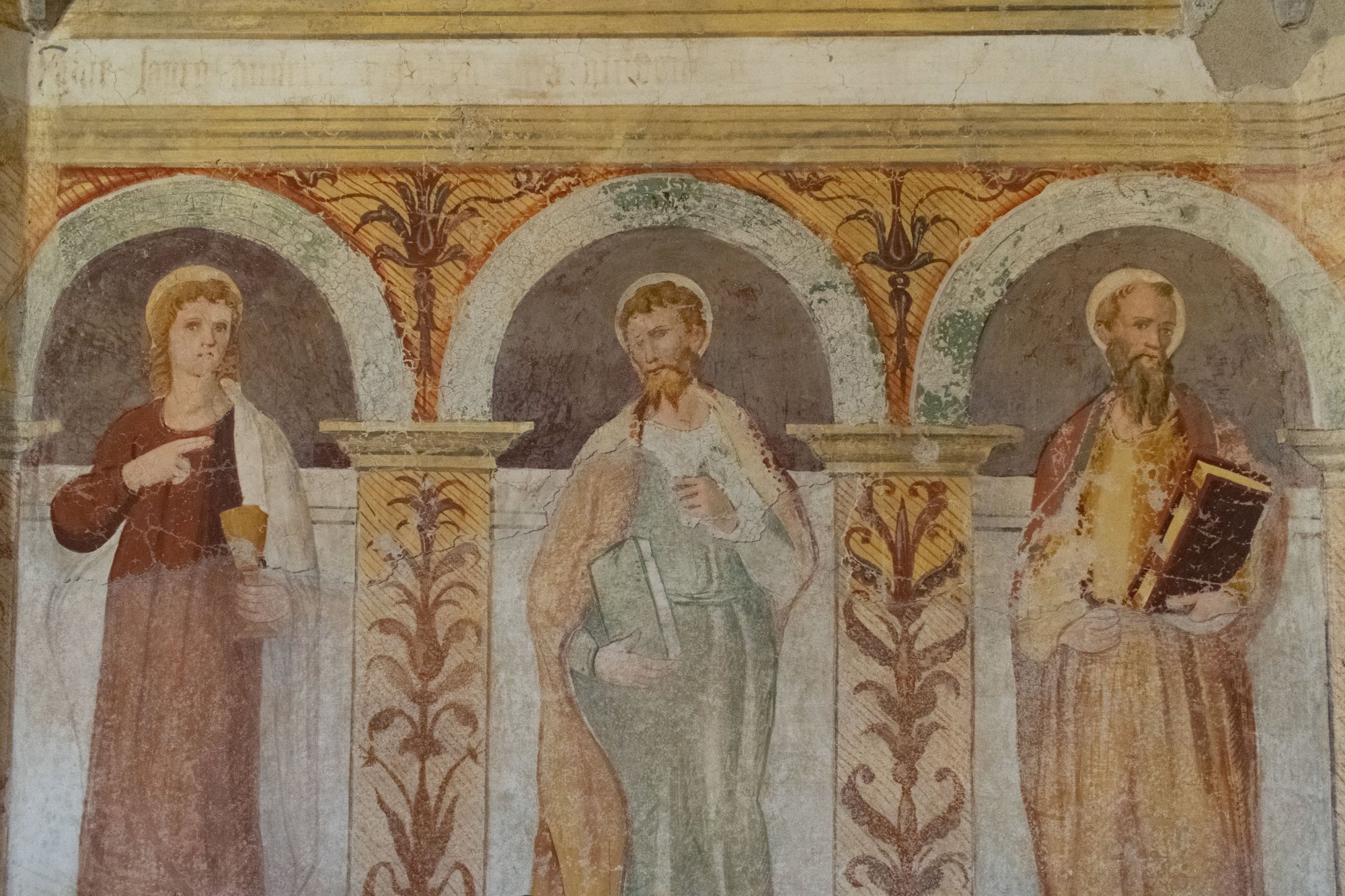 Scene tratte dal Nuovo Testamento e figure di Santi, sec. XVI, affreschi della parete sinistra della chiesa di Sant'Andrea Apostolo, Gris