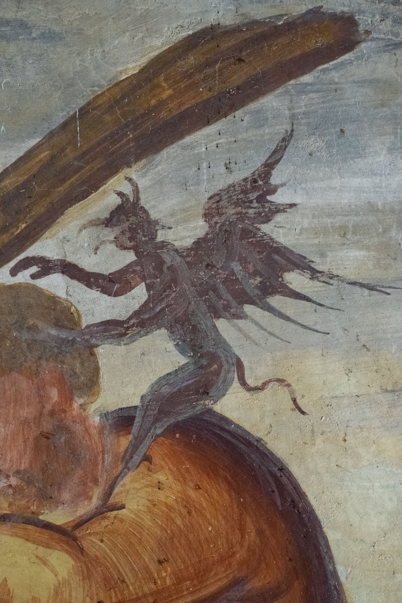 Giudizio universale, Lucifero, affresco XVI sec, chiesa di Sant'Andrea Apostolo, Gris