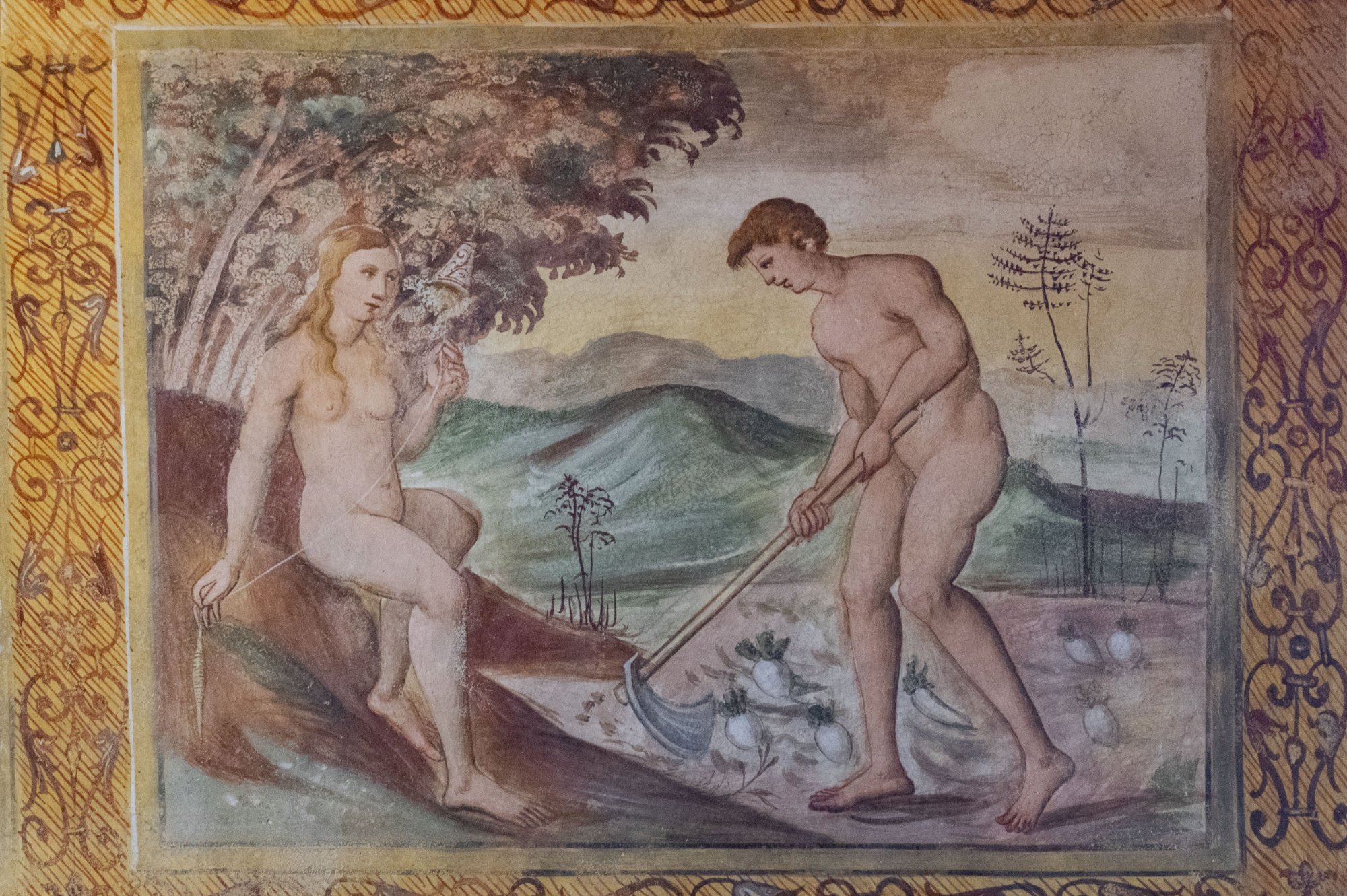 Un altro aspetto di notevole interesse storico-artistico è l’insolita presenza delle rape, diffuse in territorio friulano, nell’episodio del Lavoro dei progenitori.