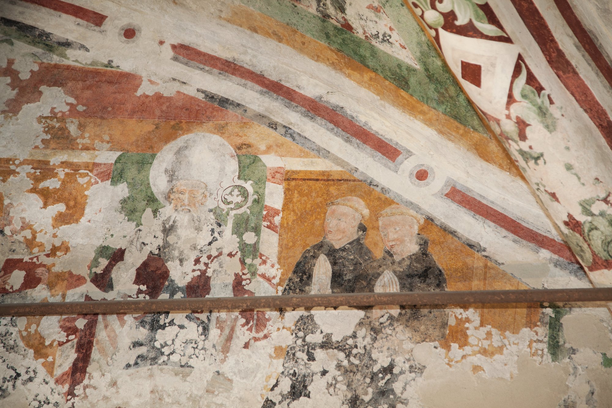 Un’ampia decorazione ad affresco della prima metà del Quattrocento interessa la zona presbiteriale (sottarchi, volta a crociera, parete absidale, lunette settentrionale e meridionale).