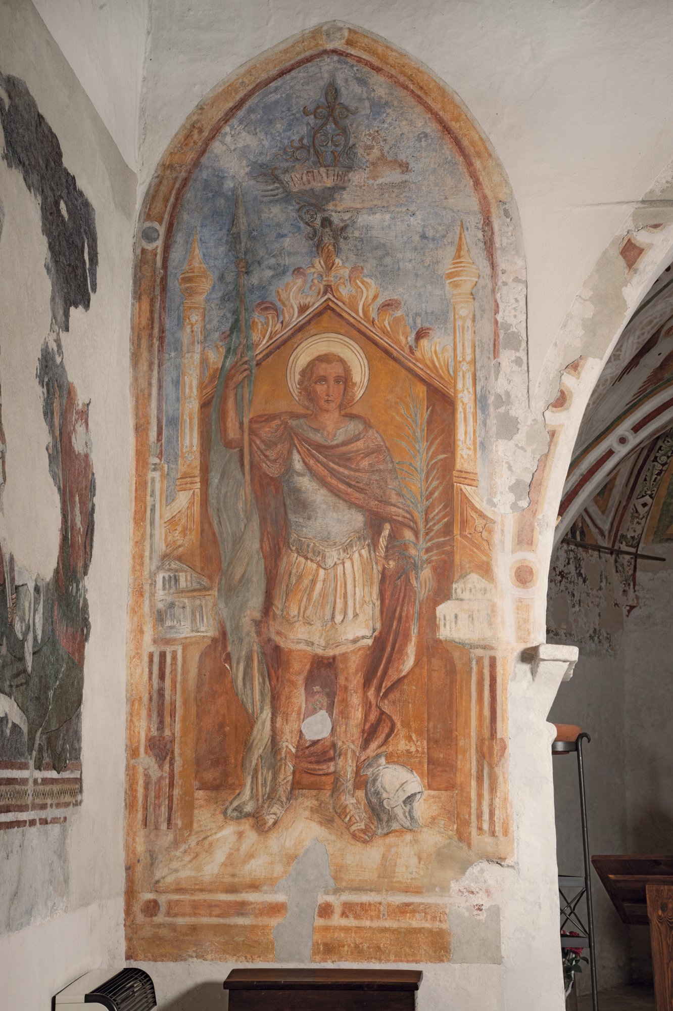 Sulla parete opposta, a seguito di restauri è apparso un grande affresco alquanto lacunoso raffigurante San Giorgio che libera la principessa la cui datazione pare risalire al primo Quattrocento.