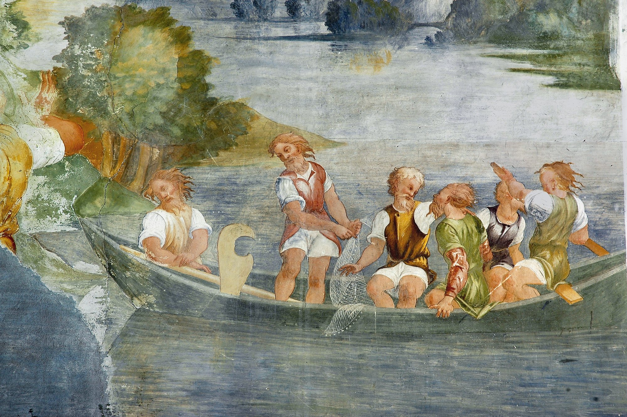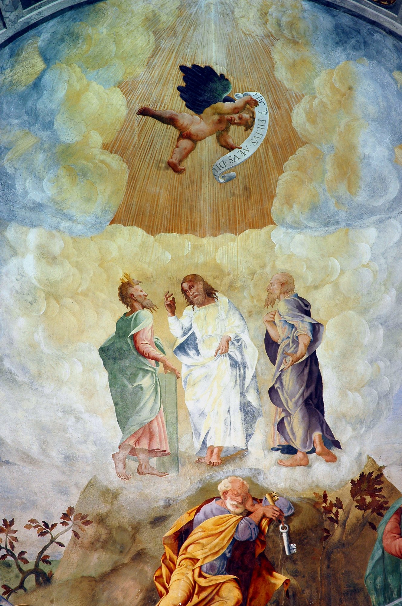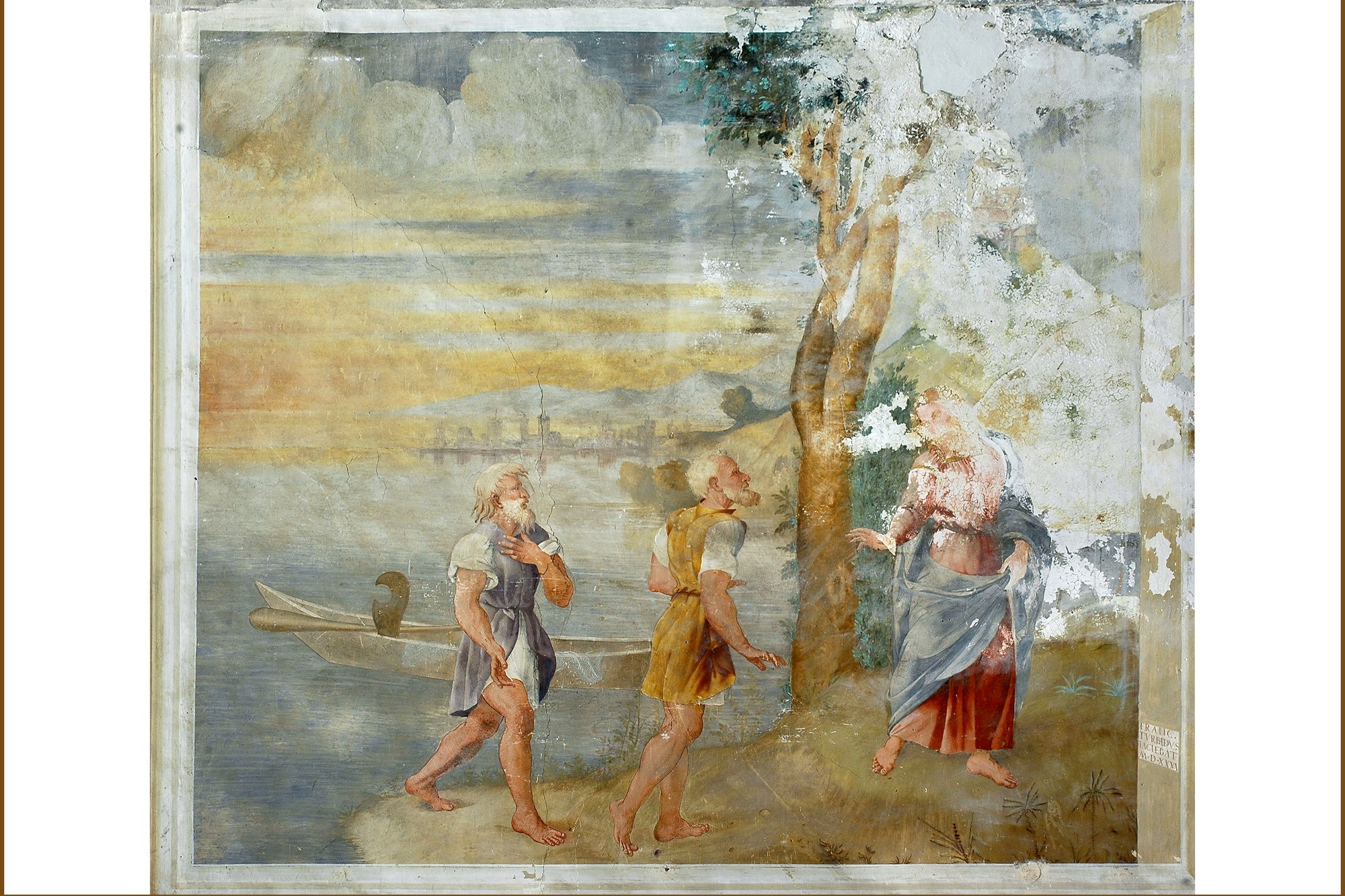 Gli affreschi della chiesa sono di Francesco India, detto “Moro” o “Torbido”, e risalgono al 1535. Sulla parete sinistra del presbiterio è raffigurata La chiamata di Pietro e di Andrea, in fondo all’abside appare La trasfigurazione sul monte Tabor (Cristo viene trasfigurato davanti a Pietro, Giacomo e Giovanni, il suo volto diventa lucente come il sole e le vesti quasi impalpabili; vi sono anche Mosè ed Elia che conversano con lui); sulla parete destra è raffigurata La pesca miracolosa sul lago di Genezaret.