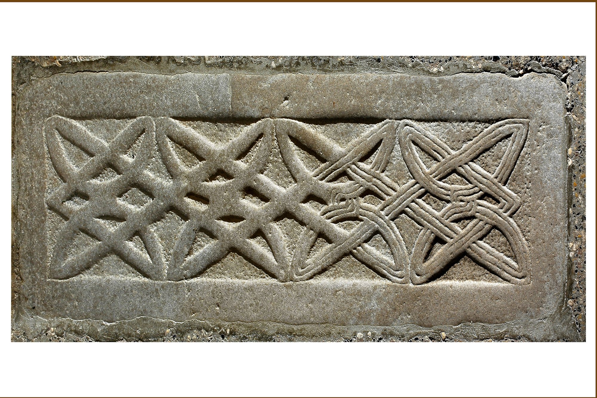 Sul pavimento, in prossimità del presbiterio, c’è una lastra marmorea la cui cornice ampia e il decoro a intreccio la farebbe risalire ai secoli VIII-IX. Mostra notevoli affinità con il frammento litico nella parte inferiore del plinto del Battistero di Callisto a Cividale del Friuli (secolo VII-VIII) e del materiale più recente rinvenuto nella chiesa di Millstatt in Carinzia (secolo XI).