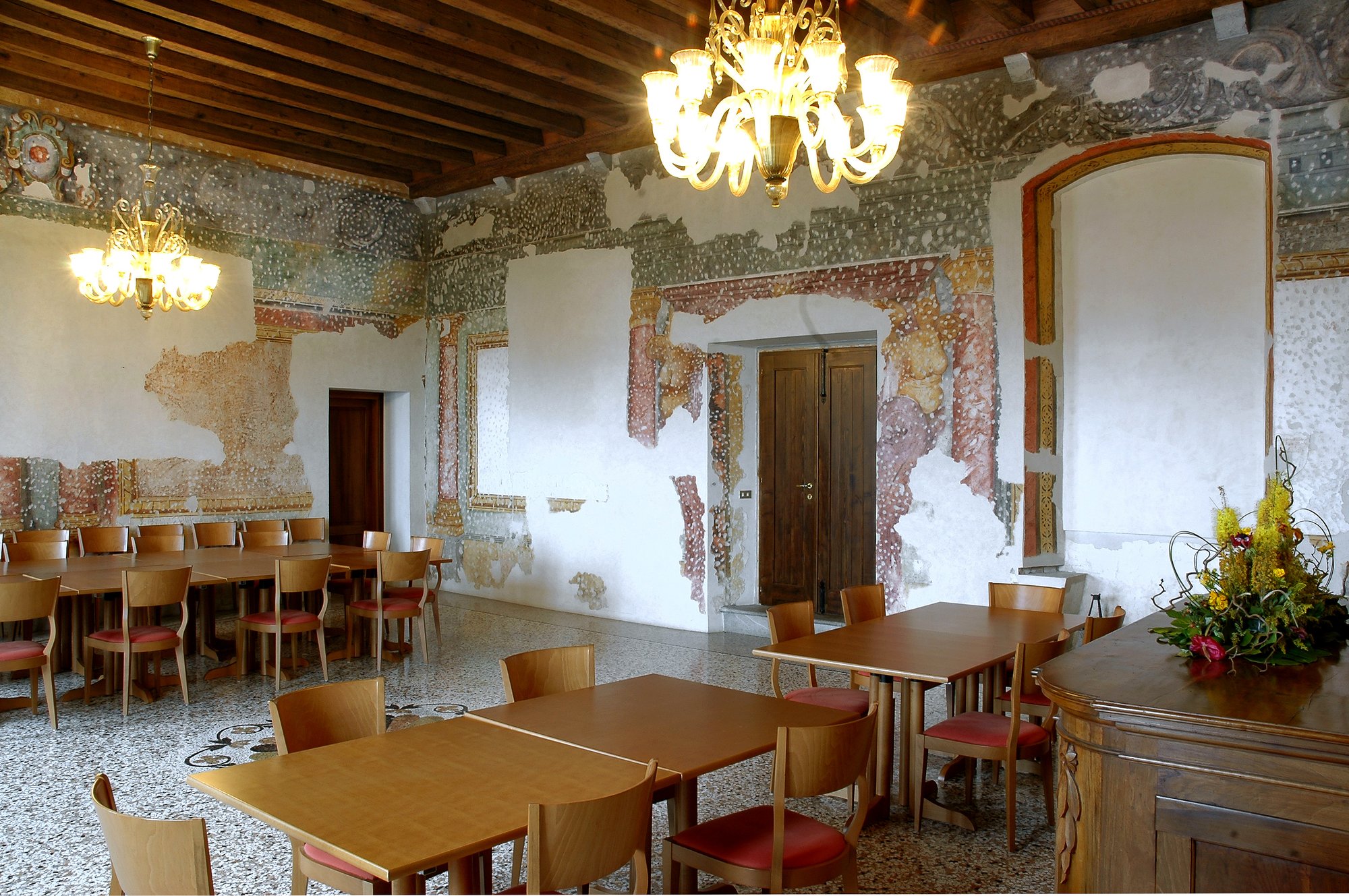 Questa sala, detta anche della vite e dell’uva, fa parte dell’ala sud dell’edificio. Il soffitto presenta travi a vista e sulle pareti quello che resta degli affreschi restaurati.