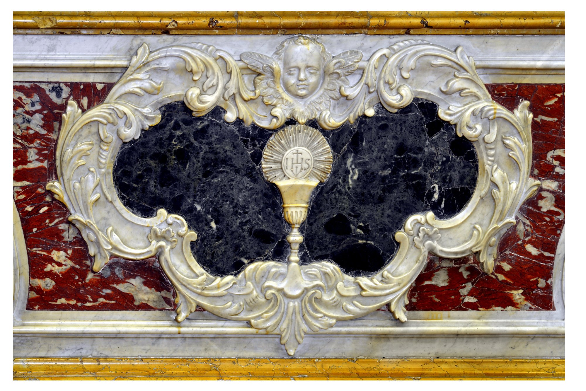 Più tardo il paliotto con calice eucaristico entro cartiglio, acquistato nel 1891.