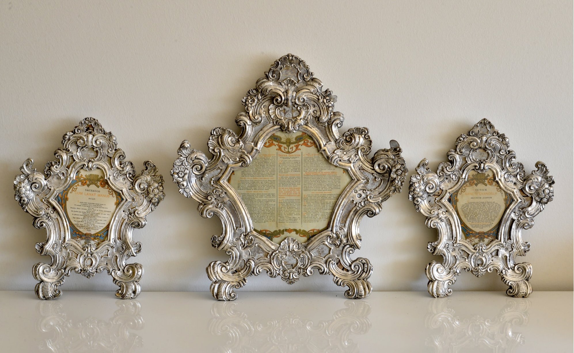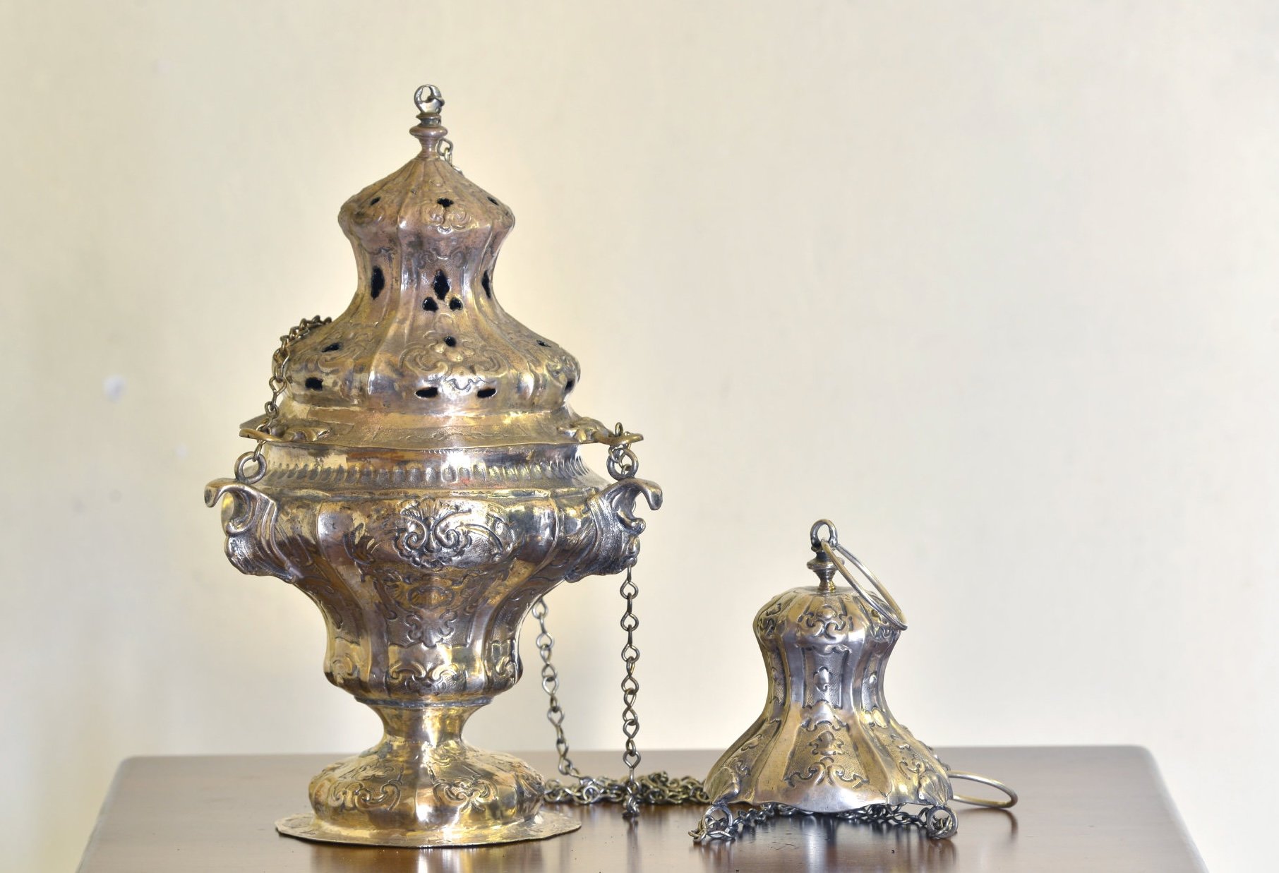 Di bottega lagunare sono ancora un incensiere dalla consueta struttura a vaso sagomato, coperchio cupoliforme di sapore orientalizzante a pressacchio strozzato e tre cartegloria in argento su anima in legno, con ricche cornici a volute, conchiglie, fiori sbalzati e cesellati; nonché un ostensorio “a sole” della stessa epoca, con piede a doppio corpo, nodo strozzato a sezione triangolare, mostra a gruppi di raggi lineari e sommitale statuina del Risorto.
