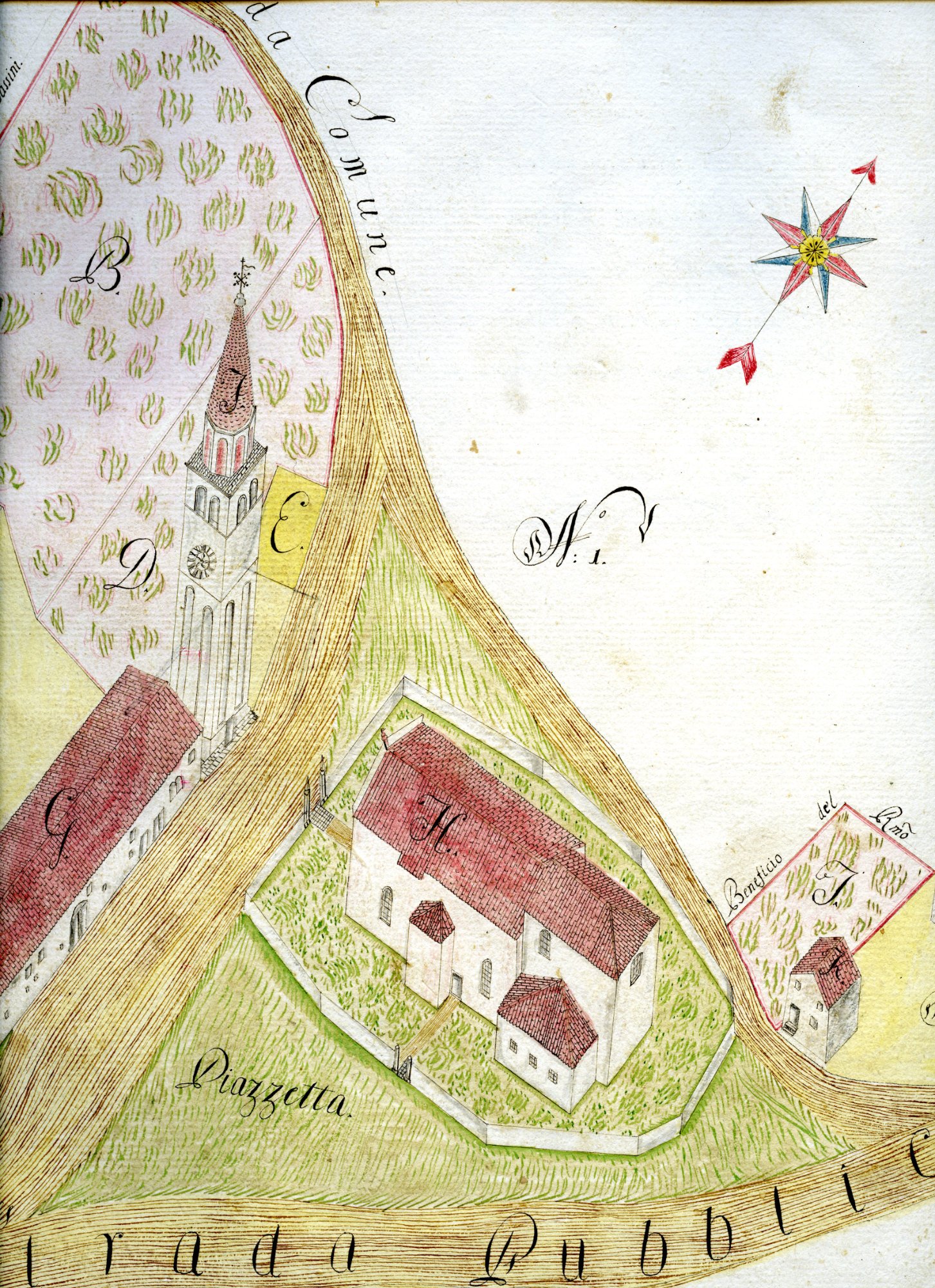 Dall’esame del disegno sembra di poter concludere per un edificio di fine Quattrocento o dei primissimi anni del Cinquecento, se non ancora precedente.