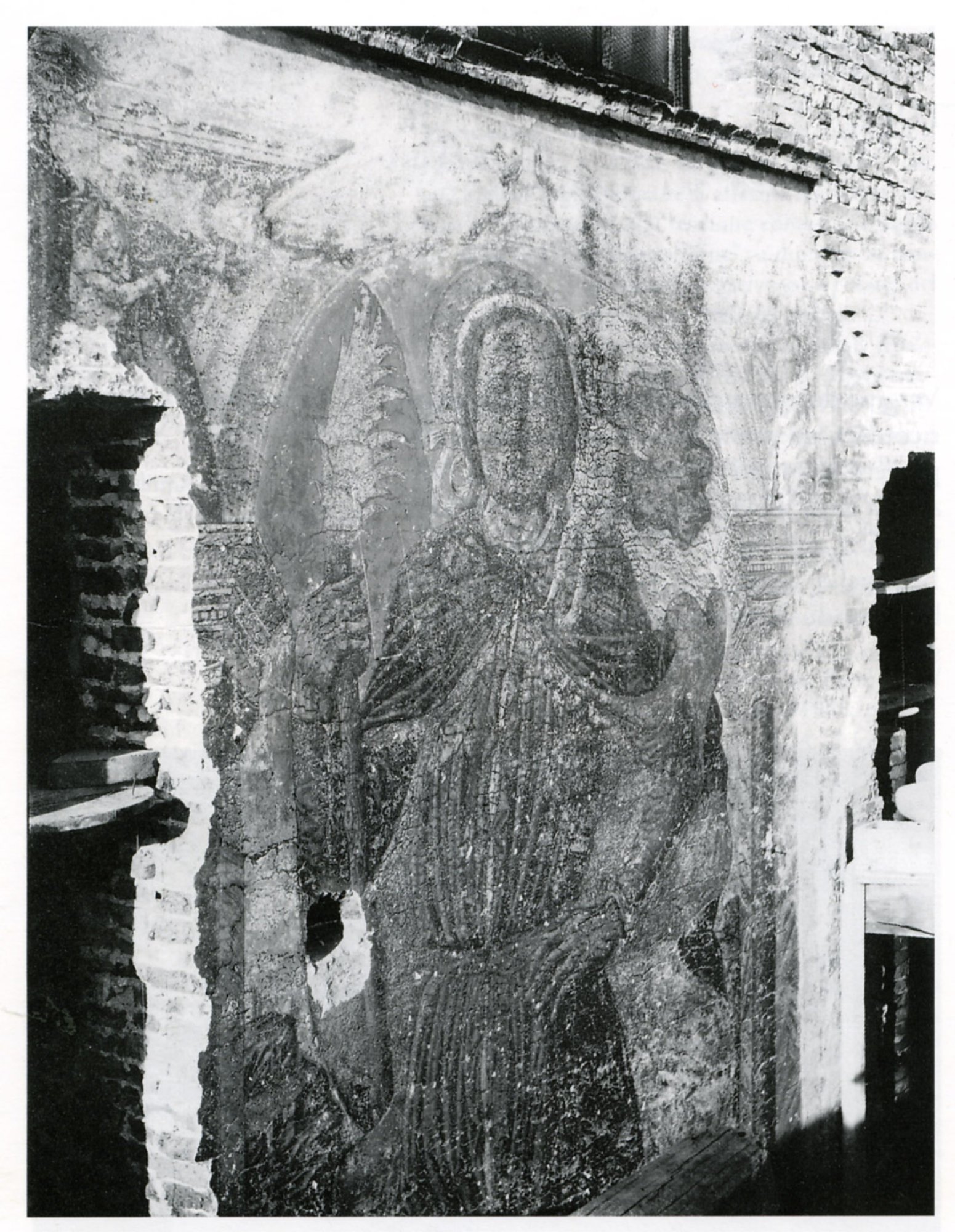A quello stesso momento sembrano appartenere gli affreschi, molto rovinati, che si collocano sulle lesene e sull’arco dell’absidiola: l’arcangelo Gabriele a sinistra, la Vergine che riceve l’annuncio sulla destra, ed in alto l’Eterno Padre.