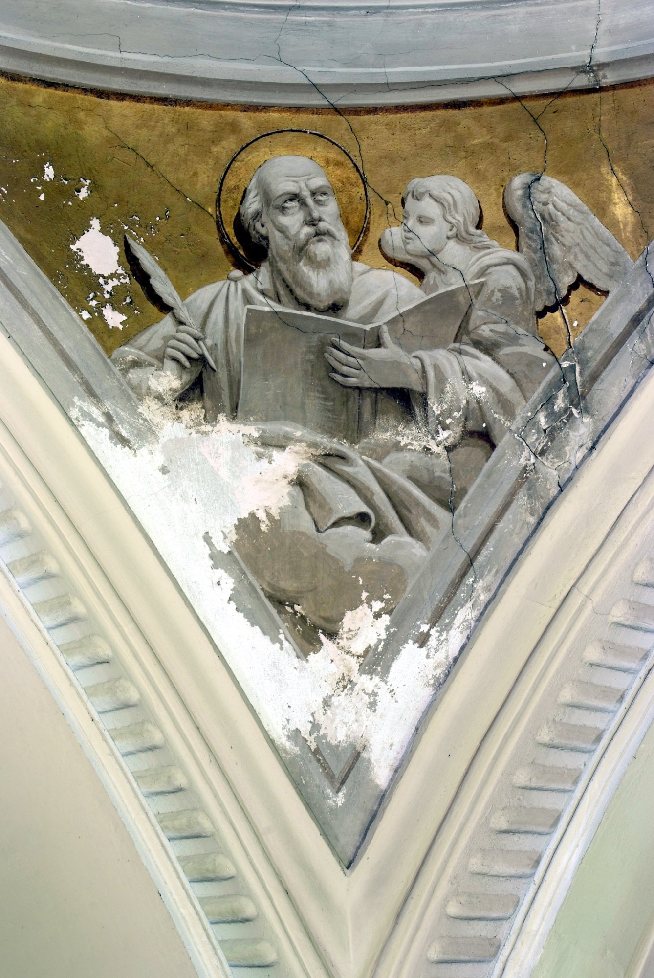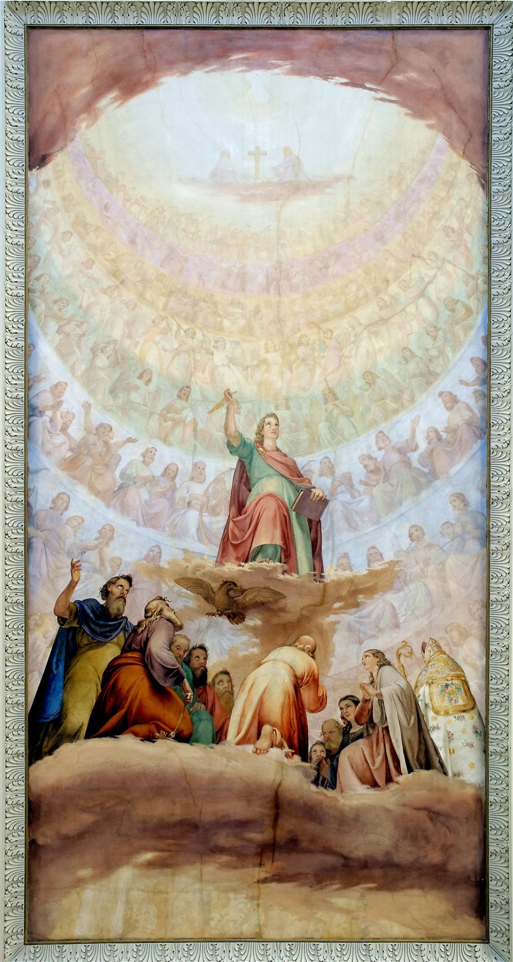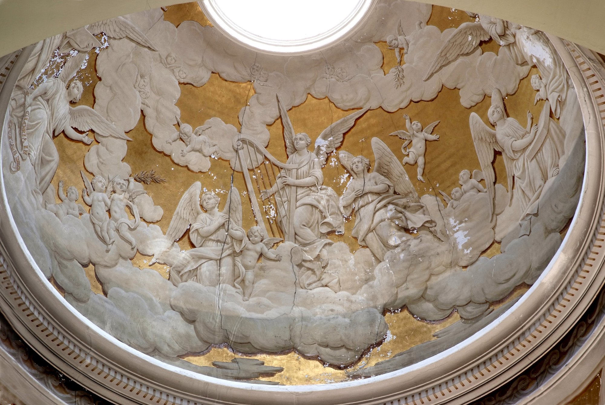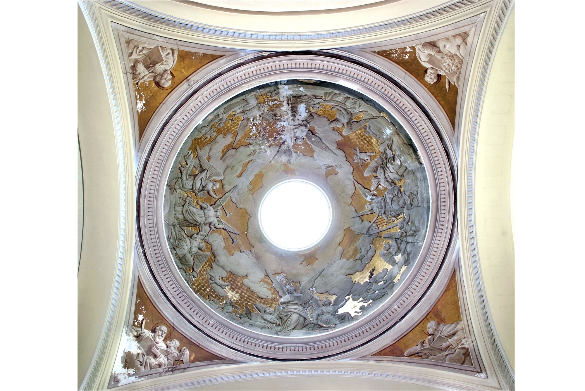 Della decorazione del soffitto fu incaricato il pittore e patriota Domenico Fabris (Osoppo 1814 – 1901), che affrescò una visione dell’Apocalisse o una gloria dei Santi.