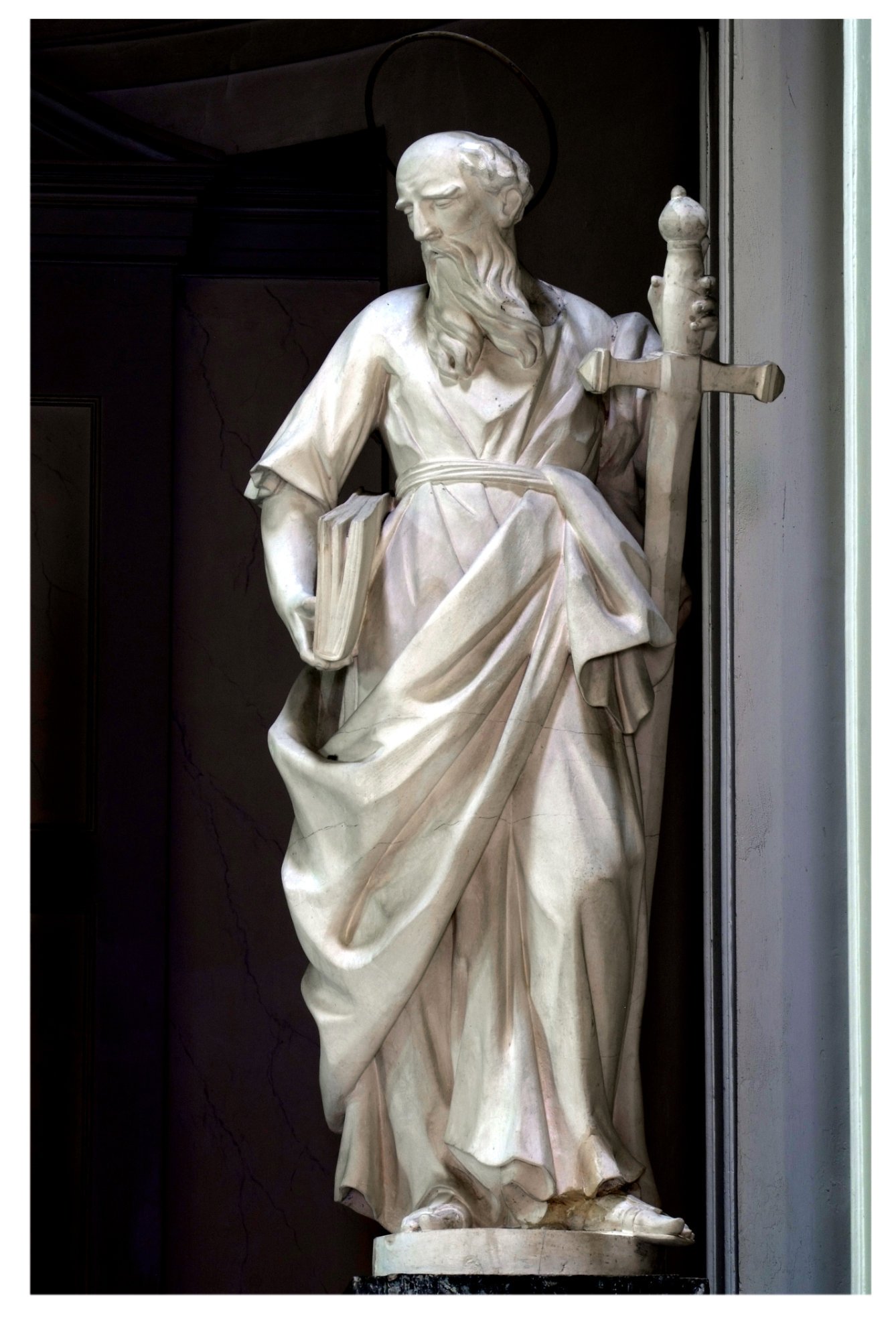 La cappella maggiore, sotto la cupola, accoglie l’altare con il grande tabernacolo e le statue degli apostoli Pietro e Paolo assegnate al veneziano Giovanni Contieri (1676 ca – 1762).