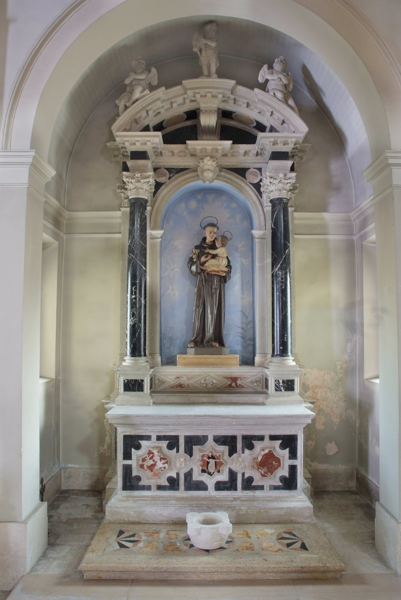 Nella cappella a metà navata si trova il settecentesco altare di Sant’Antonio di Padova, già dedicato a Sant’Antonio abate, come ricorda la tarsia del paliotto.