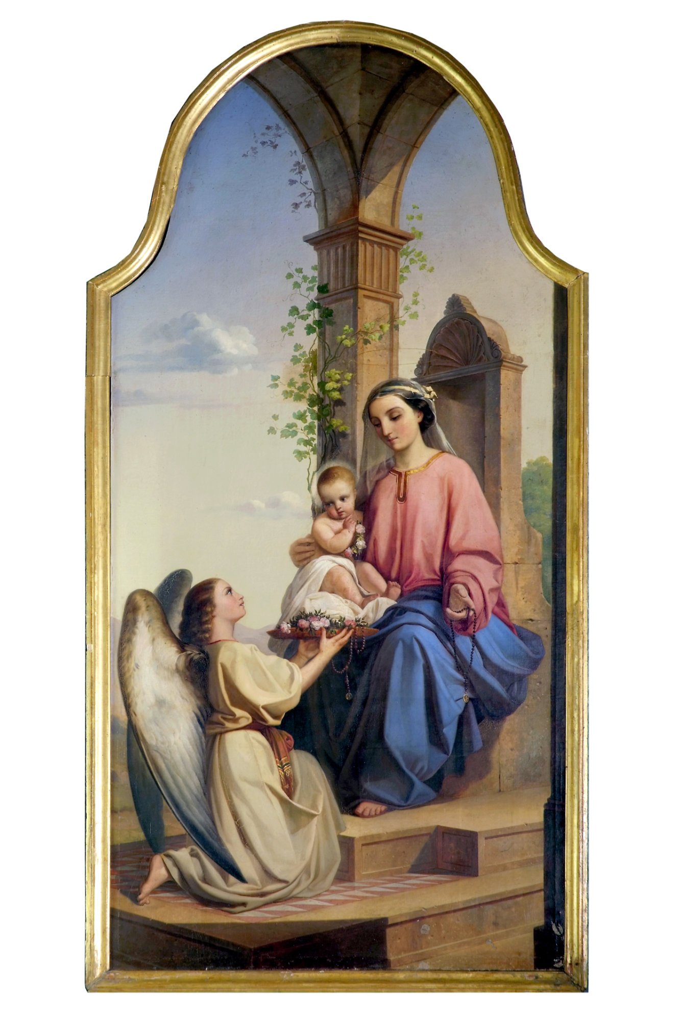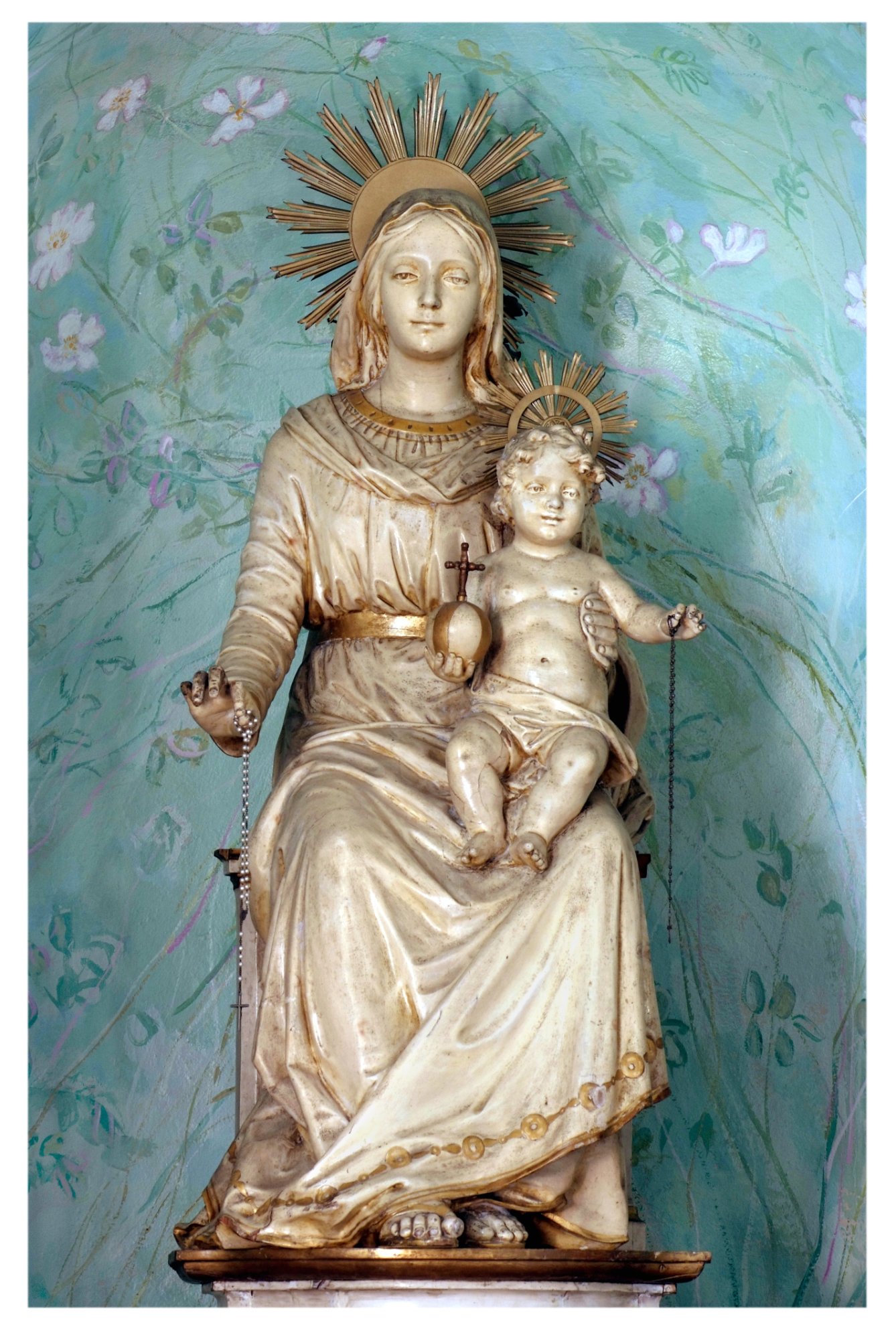 Nella cappella della navata destra, l’altare della Madonna dei fiori, ospita una paletta accademica di fine Ottocento, raffigurante la Vergine del Rosario con il Bambino omaggiata con un serto di rose da un angelo inginocchiato sui gradini del trono.