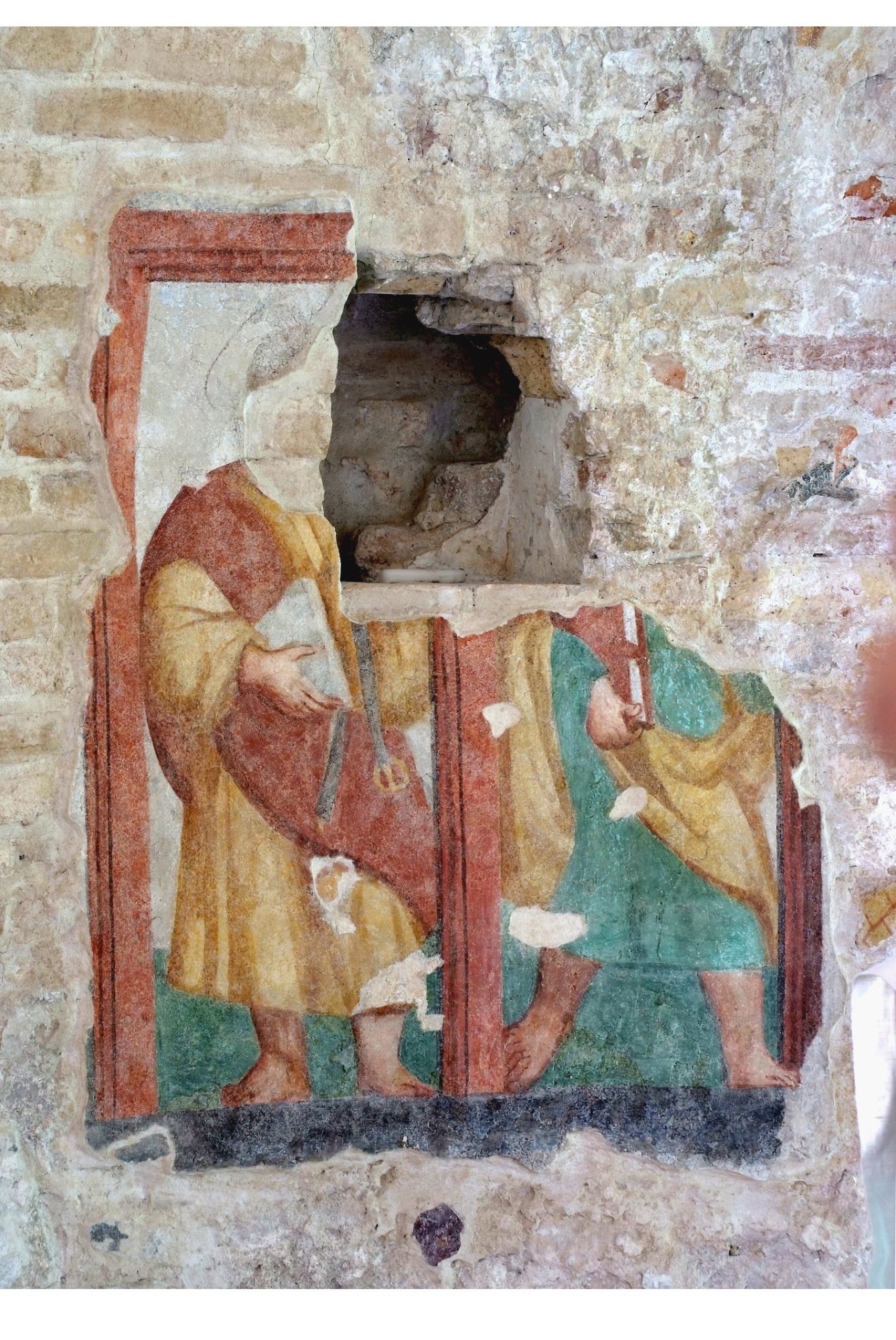 I pochi brani di affresco, ricomposti dopo le rovine e i furti del recente passato, sembrano attribuibili a un allievo di Pomponio Amalteo, il sanvitese Giuseppe Furnio: richiamano infatti l’opera di analogo soggetto, Cristo e gli apostoli, eseguita dal pittore a Luincis si Ovaro.