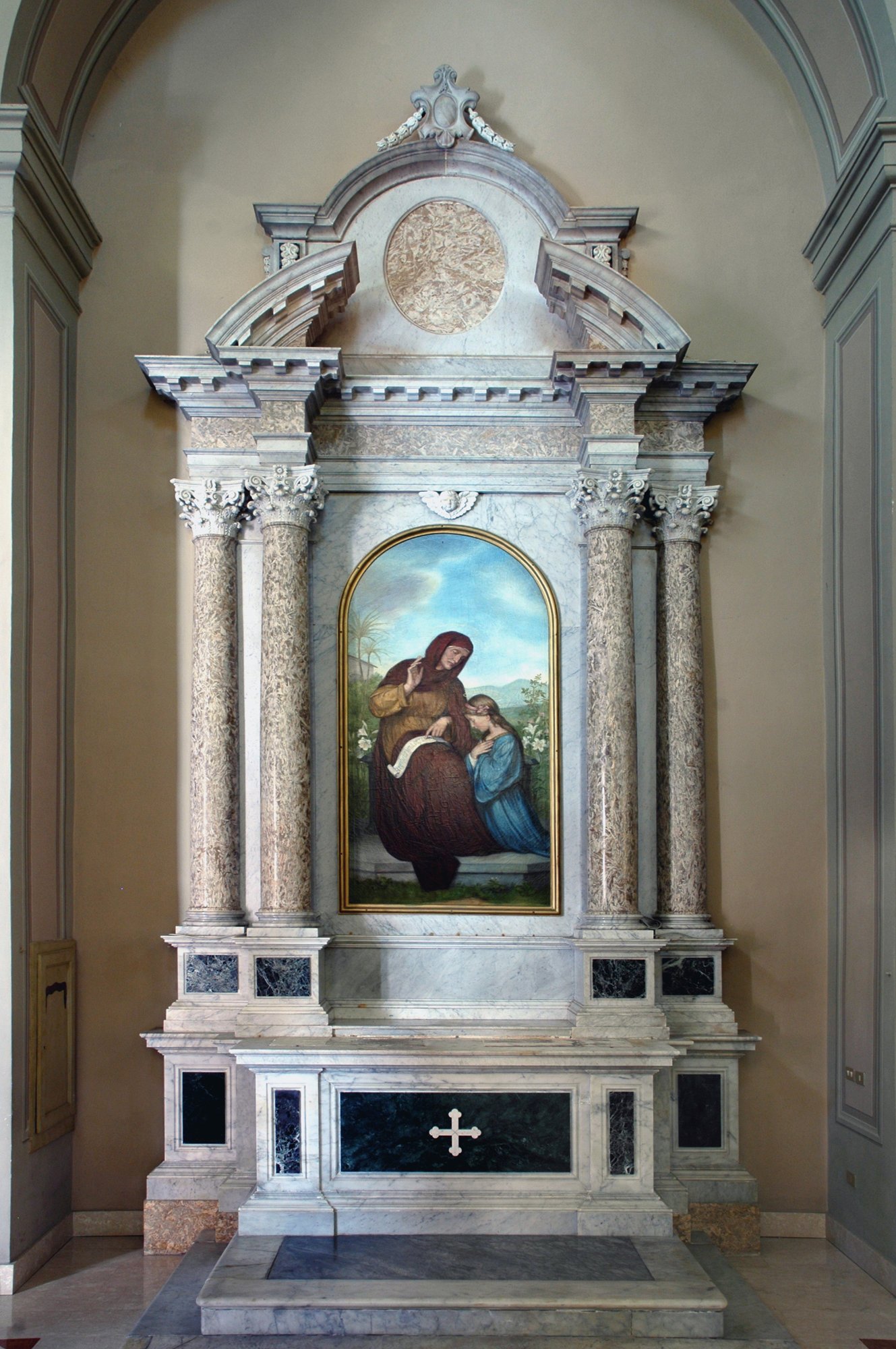 L’altare, recentemente rinnovato, è costituito da una lastra di autopsia sorretta da una pietra romana.