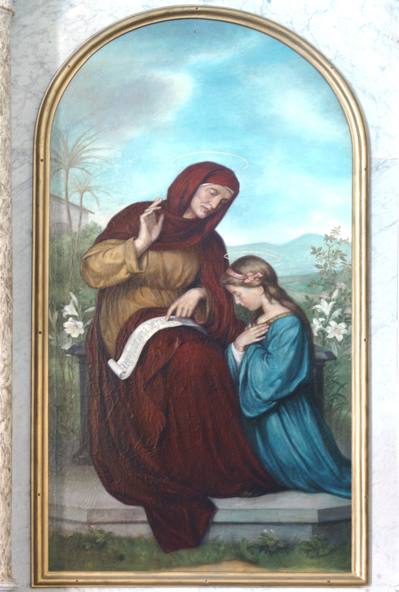 L’Assunzione della Vergine, che mostra di rifarsi alla migliore tradizione veneta e che riprende l’analogo soggetto dipinto qualche anno prima da Santi nella chiesa di Santa Maria Maggiore a Trieste. È una composizione che vede al centro la Vergine in piedi su nubi cui fanno ala angioletti disposti orizzontalmente con strumenti musicali o simboli sacri.