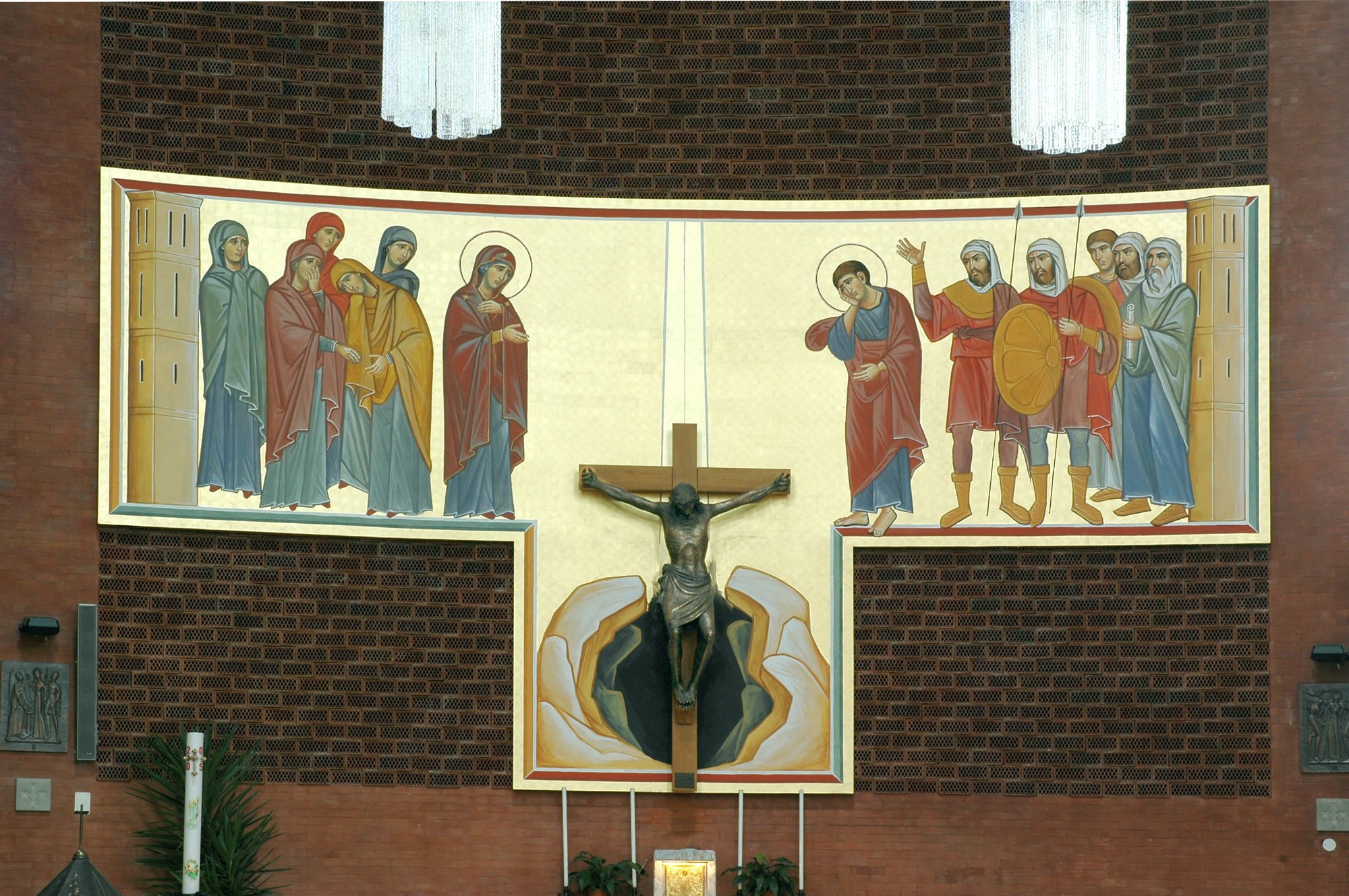 Sono dipinti di notevole effetto visivo, che vivono di una iconografia tradizionale di tipologia bizantina, con figure di grandi dimensioni su fondo oro, e con “contaminazioni” gotiche, così com’è nella poetica dell’autore, che ha realizzato opere improntate alla medesima spiritualità in molte chiese d’Italia.