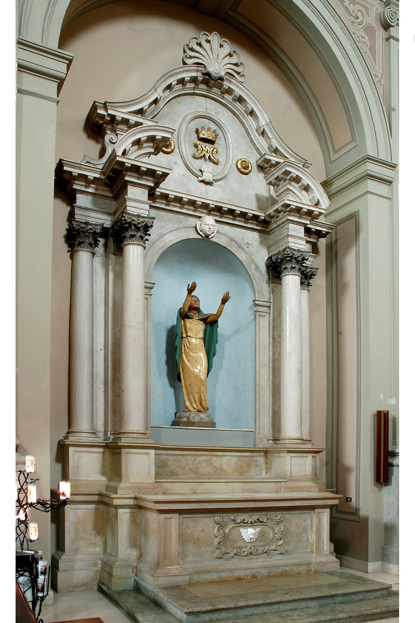 Negli alti due trovarono spazio a destra una statua lignea raffigurante il Redentore, acquistata dalla bottega di Ortisei del tirolese Ferdinando Perathoner nel 1912, e a sinistra la statua lignea della Madonna Assunta, pregevole opera dello scultore milanese Garda acquisita negli anni Trenta.