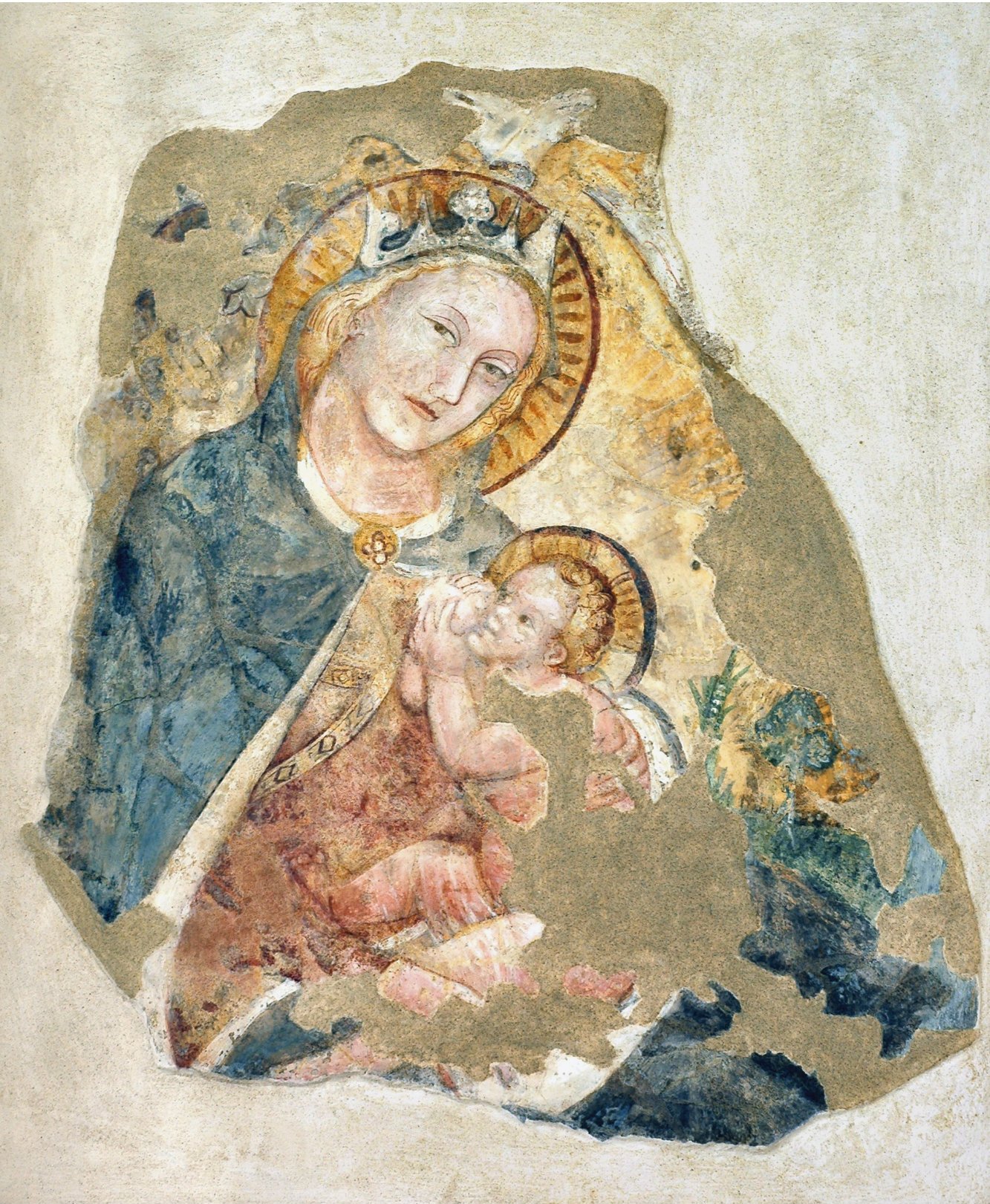 Allievo di Vitale da Bologna, Madonna col Bambino (particolare), ora a San Giacomo